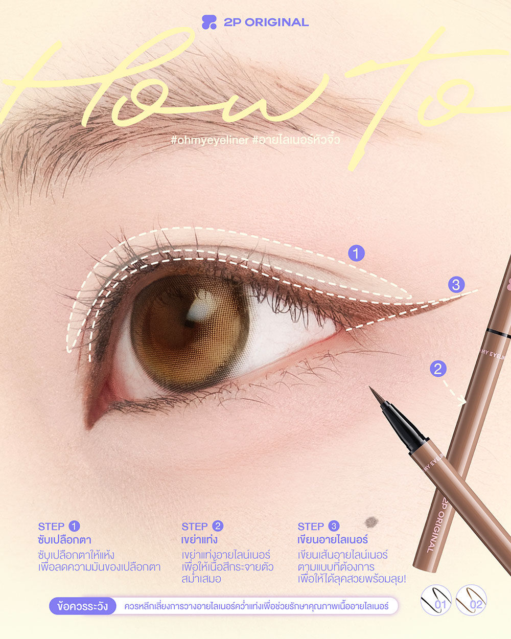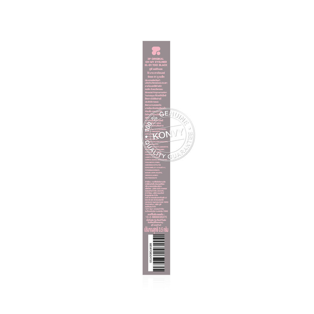 2P Original Oh My Eyeliner 0.5g #01 Too Black อายไลเนอร์สีดำ ให้เส้นคมชัด ด้วยนวัตกรรม Bimodal Polymerization Technique ที่ช่วยให้เม็ดสียึดเกาะผิวได้อย่างมีประสิทธิภาพ มาพร้อมหัวแปรงเรียวเล็กพิเศษขนาด 0.1 มม. เขียนลื่น ควบคุมเส้นได้ง่าย แม้สำหรับผู้เริ่มต้น สามารถปรับความหนาบางของเส้นได้ตามต้องการ ติดทนยาวนานตลอดวัน แม้บนผิวมัน