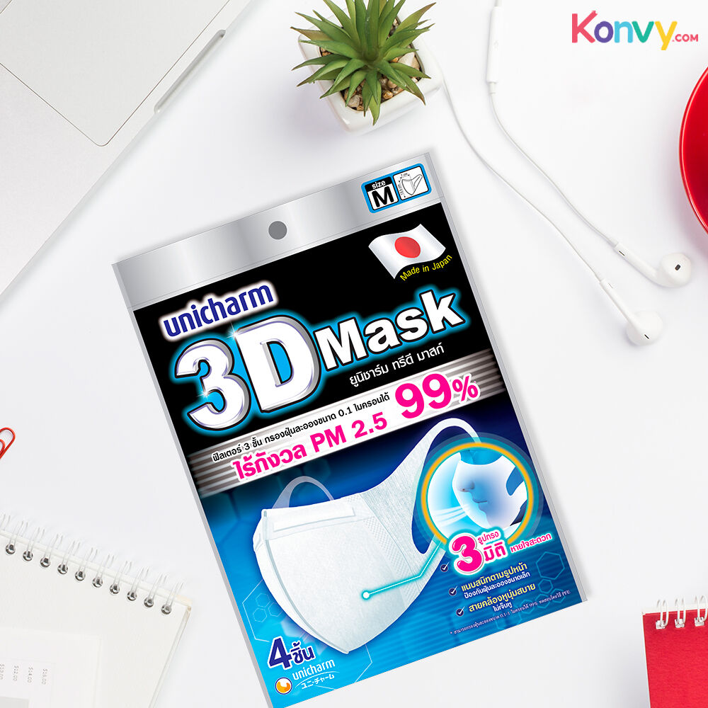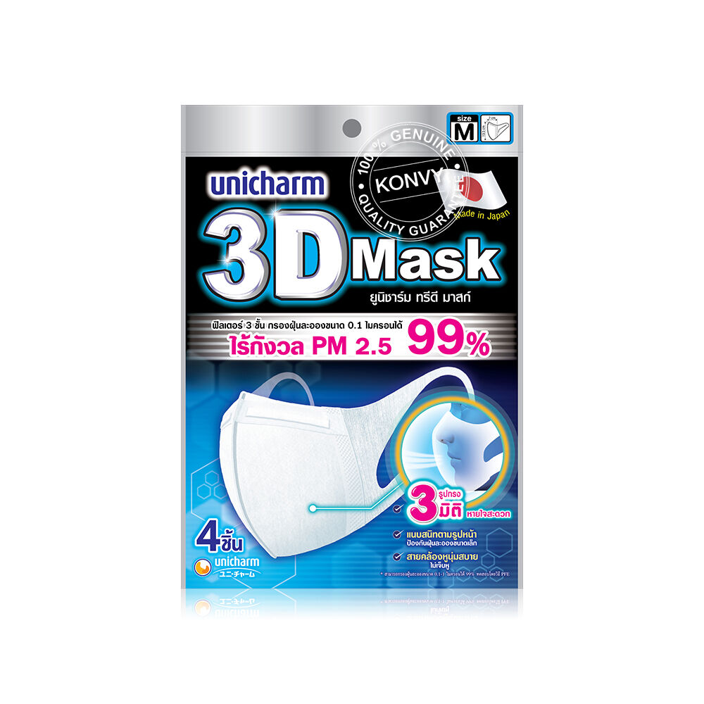 3D Mask Adult-M [4pcs x 4 Packs] ใส่ไว้อุ่นใจกว่าด้วยหน้ากากอนามัยสำหรับผู้ใหญ่ Size M โดดเด่นด้วยรูปทรงสามมิติ ทำให้แนบสนิท กระชับพอดี ป้องกันฝุ่นละออง PM 2.5 ใส่สบาย หายใจสะดวก สายคล้องหู ยืดหยุ่น สามารถใส่ได้ยาวนานไม่เจ็บหู