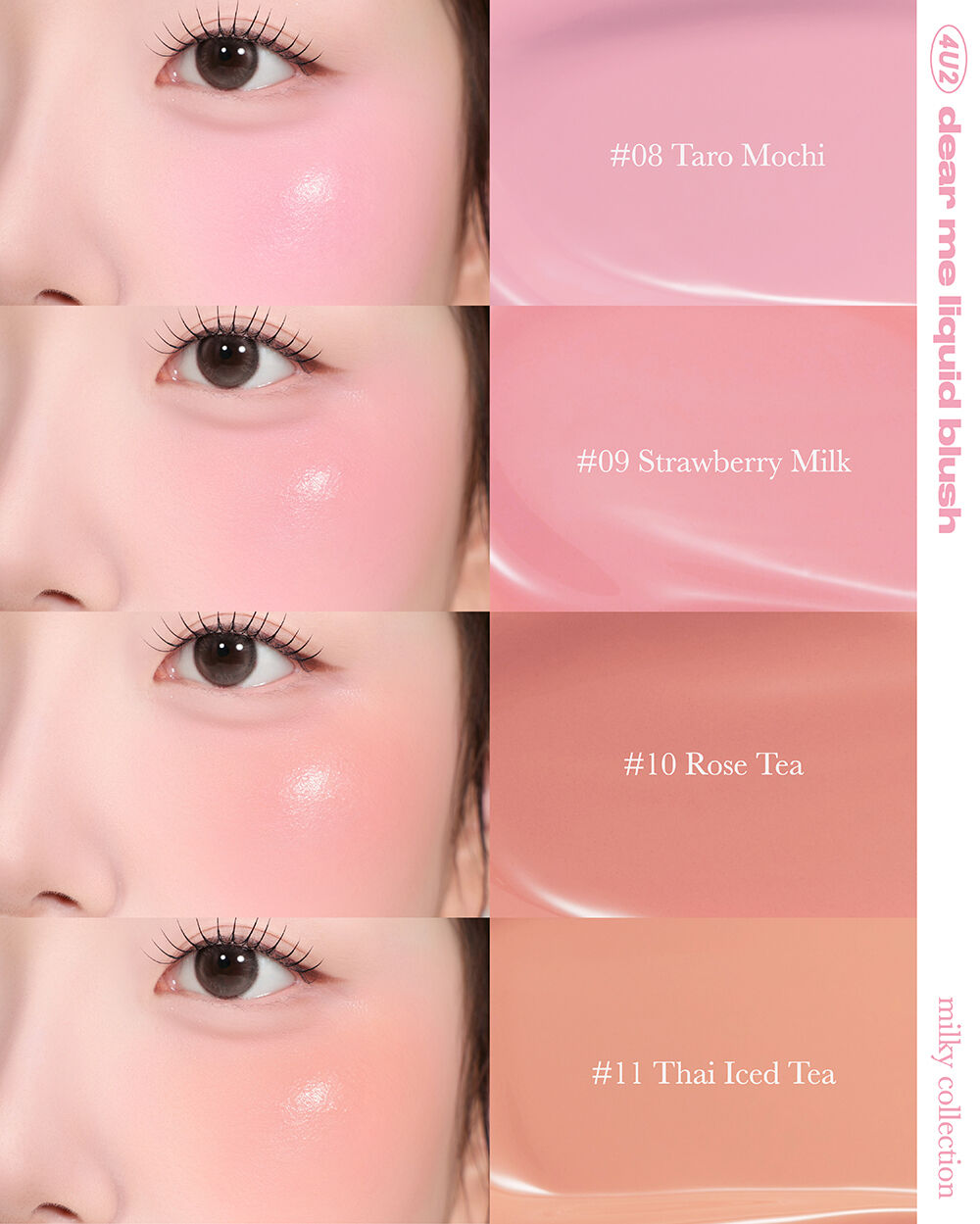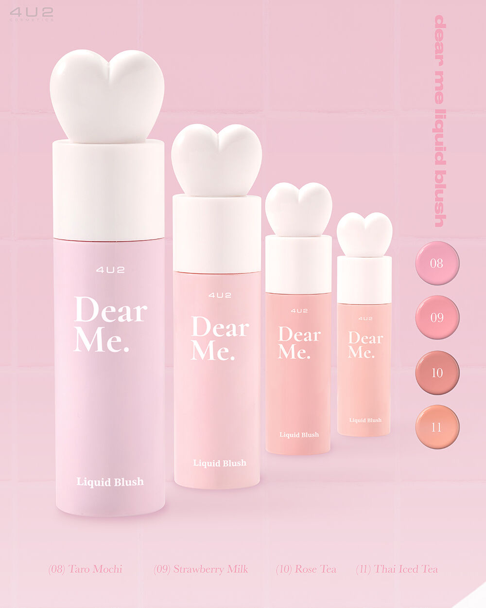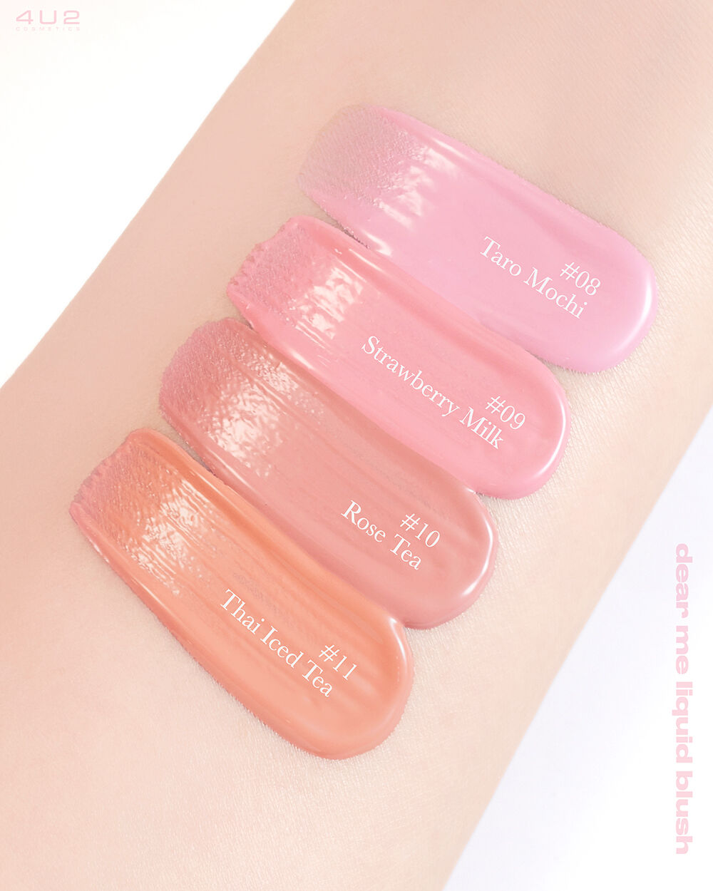 4U2 Dear Me Liquid Blush 3.7g #09 #บลัชหูกระต่าย ลิควิดบลัช เนื้อบางเบา สีชัดและติดทนนาน เบลนด์และเกลี่ยง่าย ไม่เป็นคราบ แนบสนิทไปกับผิวช่วยเพิ่มสีสันให้แก้ม เนื้อครีมฉ่ำวาวสัมผัสนุ่มลื่น เบาสบาย เนียนไปกับผิวให้ลุคที่ดูเป็นธรรมชาติ มาพร้อมเทคโนโลยีพิเศษ Glow Shiny Film ช่วยเพิ่มความฉ่ำวาว ผสานการบำรุงจาก Strawberry Fruit Extract, Pomegranate Fruit Extract และ Sunflower Seed Oil ให้ผิวมีความชุ่มชื่น เปล่งปลั่งอย่างเป็นธรรมชาติ