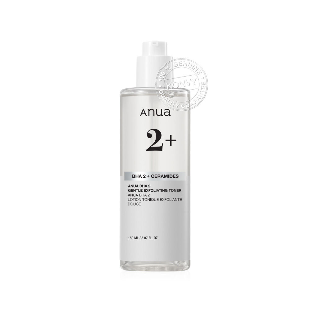 ANUA BHA 2 Gentle Exfoliating Toner 150ml โทนเนอร์ผลัดเซลล์ผิวสูตรอ่อนโยน เนื้อสัมผัสบางเบา ให้ความรู้สึกสดชื่น อุดมไปด้วยส่วนผสมของ BHA 2% และ Tea Tree ช่วยผลัดเซลล์ผิวที่ตายแล้วอย่างอ่อนโยน ลดการอุดตันของรูขุมขน และปรับสมดุลผิวให้เรียบเนียน แลดูกระจ่างใสขึ้น พร้อมผสาน Ceramide และ Hyaluronic Acid ช่วยปลอบประโลม และเติมความชุ่มชื้น เพื่อผิวเรียบเนียน สุขภาพดี