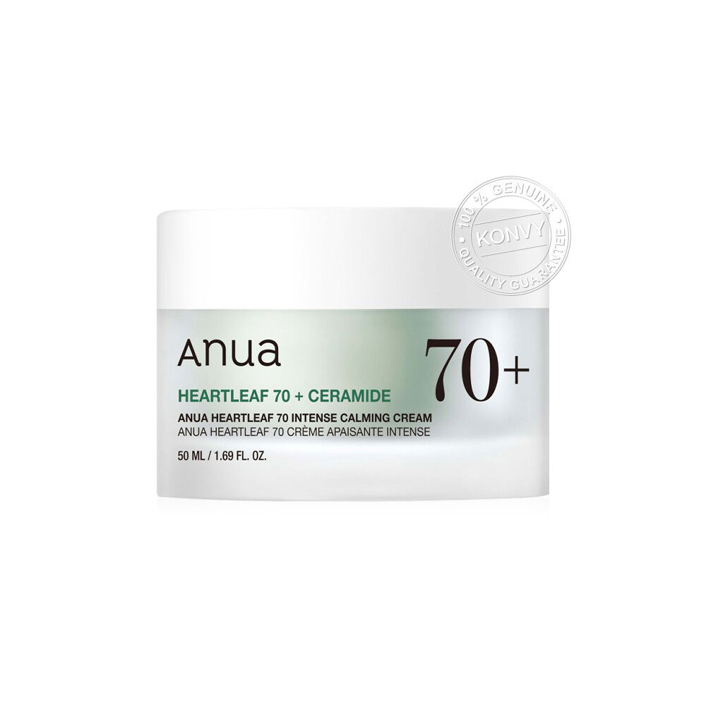 ANUA Heartleaf 70 Intense Calming Cream 50ml ครีมบำรุงผิวหน้า เนื้อสัมผัสเข้มข้น ซึมเร็ว ไม่เหนียวเหนอะหนะ อุดมด้วยไปด้วยสารสกัดจาก Heartleaf 70% ช่วยปลอบประโลมและลดการระคายเคืองผิว พร้อมผสาน Ceramide และ Panthenol ช่วยเติมความชุ่มชื้น และฟื้นฟูเกราะป้องกันผิวให้แข็งแรง เพื่อผิวเนียนนุ่ม สุขภาพดี