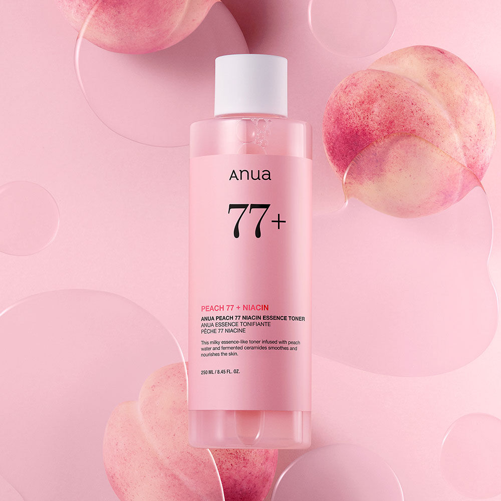 ANUA Peach 77 Niacin Essence Toner 250ml โทนเนอร์เนื้อน้ำ สัมผัสบางเบา อุดมด้วยสารสกัดจากพีช 77% และ Ceramide ช่วยเติมความชุ่มชื้นให้กับผิว ปรับผิวให้เรียบเนียน พร้อมบำรุงผิวแบบบล้ำลึกอย่างอ่อนโยน เพื่อเตรียมผิวก่อนแต่งหน้าให้ดูเนียนสวย ติดทนนาน