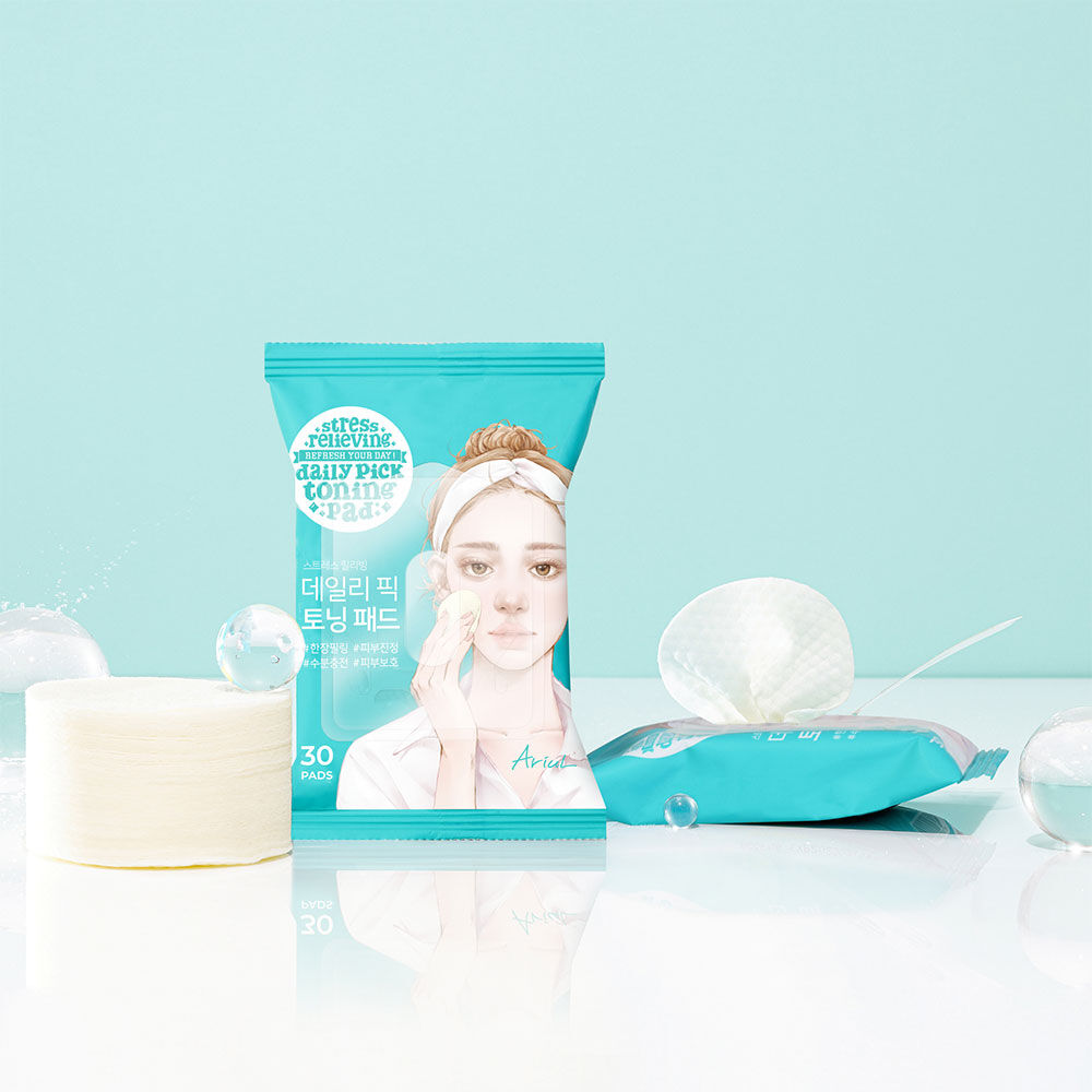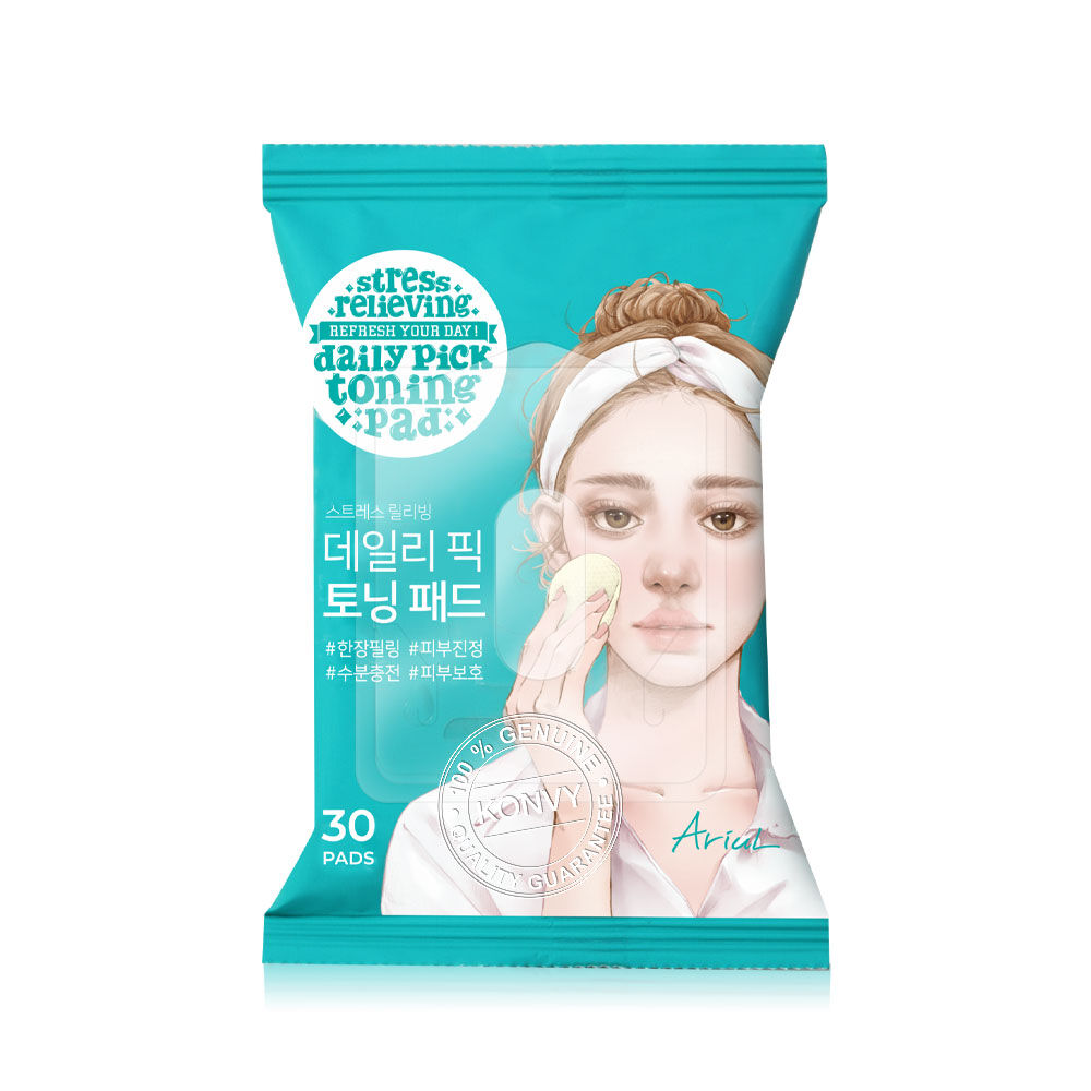 ARIUL Stress Relieving Daily Pick Toning Pad 30 Sheets โทนเนอร์แผ่นสูตรอ่อนโยน ช่วยทำความสะอาดสิ่งตกค้าง พร้อมบำรุงผิวหน้าให้ชุ่มชื้นและผ่อนคลาย ลดการอักเสบของผิวหนัง ปลอบประโลมผิว ฟื้นฟูผิวให้ดูสดใส มีสารสกัด Centella Asiatica 500,000ppm และส่วนผสม Centella 5 ชนิด เพื่อปลอบประโลมผิวที่บอบบาง เติมความชุ่มชื้นให้ผิวเรียบเนียนนุ่มชุ่มชื้น กรดไฮยาลูโรนิกช่วยให้ผิวชุ่มชื้น