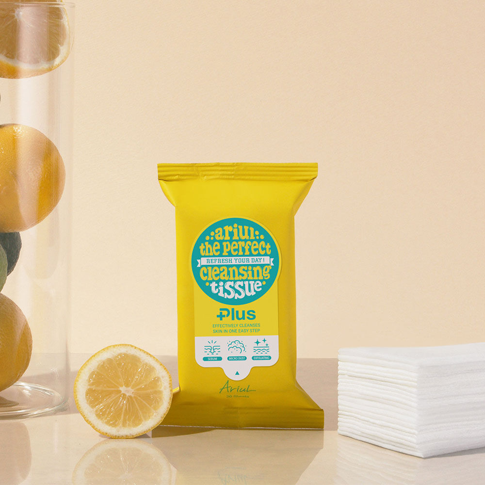 ARIUL The Perfect Cleansing Tissue Plus 20 Sheets คลีนซิ่งทิชชู่ ทำความสะอาดผิวหน้าได้หมดจด เช็ดเครื่องสำอางกันน้ำได้ และขจัดสิ่งสกปรกต่างๆ ครีมกันแดด คราบเหงื่อ ทำความสะอาดได้รวดเร็วอย่างอ่อนโยน ขจัดน้ำมันส่วนเกิน ขจัดฝุ่นที่ตกค้างในรูขุมขน มีกลิ่นซิตรัสจากน้ำมันหอมระเหยธรรมชาติ ช่วยฟื้นฟูและผ่อนคลายให้คุณรู้สึกสดชื่น และให้ความชุ่มชื่นแก่ผิว ส่วนผสมจากพืชพรรณธรรมชาติ น้ำมันเมล็ดดอกทานตะวัน สารสกัดจากคาโมมายล์ ส้ม มะนาว มะกรูด ฟักทอง สับปะรด มะละกอ บ๊วย ช่วยเพิ่มประสิทธิภาพในการทำความสะอาด ผิวมีความกระจ่างใสขึ้น ผิวผ่อนคลาย มอบความชุ่มชื้น ไม่แห้งตึง ปลอบประโลมผิว พร้อมมอบความสมดุลให้แก่ผิว