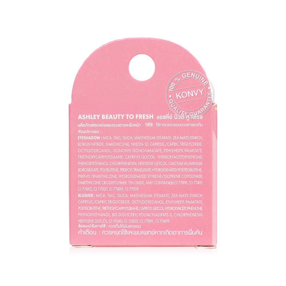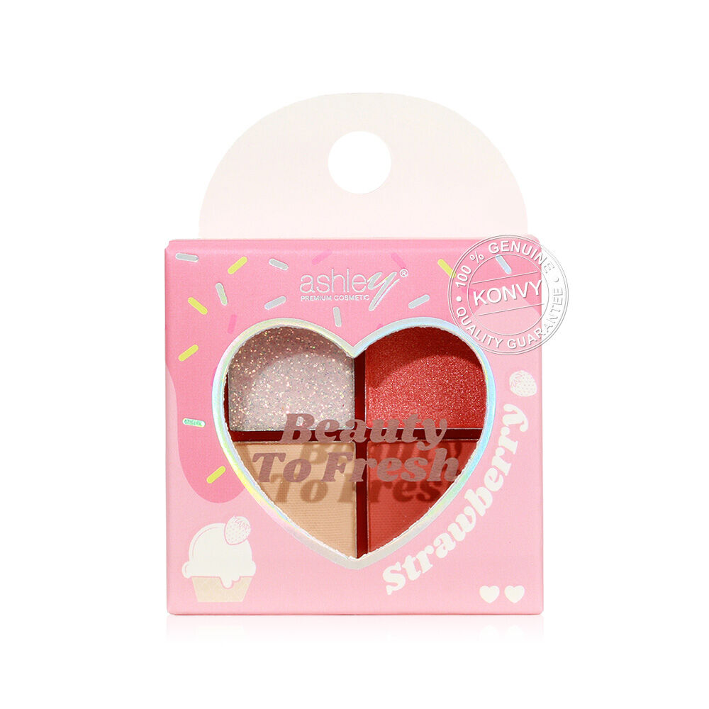 Ashley Beauty To Fresh [2g + 2.5g] #02 Strawberry เพิ่มสีสันให้แก้มและเปลือกตาโดดเด่นขั้นสุดกับพาเลทเมคอัพไอศกรีมคอลเลกชั่น ประกอบด้วยอายแชโดว์ 4เฉดสี ทั้งเนื้อแมท เนิ้อชิมเมอร์ และเนื้อกลิตเตอร์ มาพร้อมบลัชออนสีสวยในตลับเดียว เนื้อสีชัด พิกเมนท์แน่น เกลี่ยง่าย ชิมเมอร์เม็ดละเอียดฉํ่าวาว เล่นแสงสวย ขนาดเล็กพกพาสะดวก ครีเอทลุคใหม่ได้ไม่มีเบื่อ เพิ่มเสน่ห์ดวงตาให้น่าค้นหาได้ง่ายๆ เพียงเลือกตามสีที่ชอบ แต่งแต้มเพียงเล็กน้อยทั้งบนเปลือกตาและพวงแก้มก็สวยสดใสได้ทั้งวัน เลือกแต่งได้ทั้ง Everyday look ในวันธรรมดาสบายๆ หรือแต่งไปเที่ยวในลุคสุดแซ่บก็เข้าสุดๆ