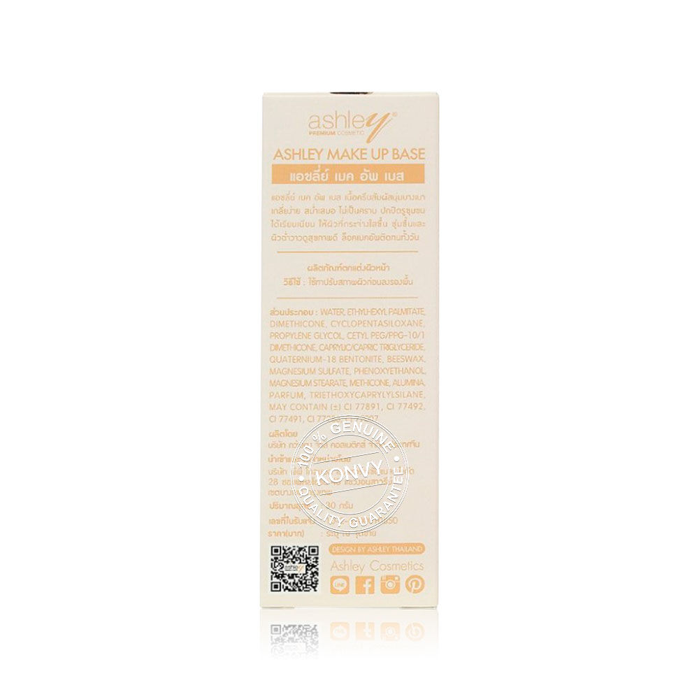 Ashley Makeup Base 30g #03 Purple เมคอัพเบสเนื้อครีม สัมผัสนุ่มบางเบา เกลี่ยง่าย สม่ำเสมอ ไม่เป็นคราบ ช่วยปรับสภาพผิว เบลอรูขุมขน พร้อมให้ความชุ่มชื้น และความฉ่ำวาวแก่ผิว