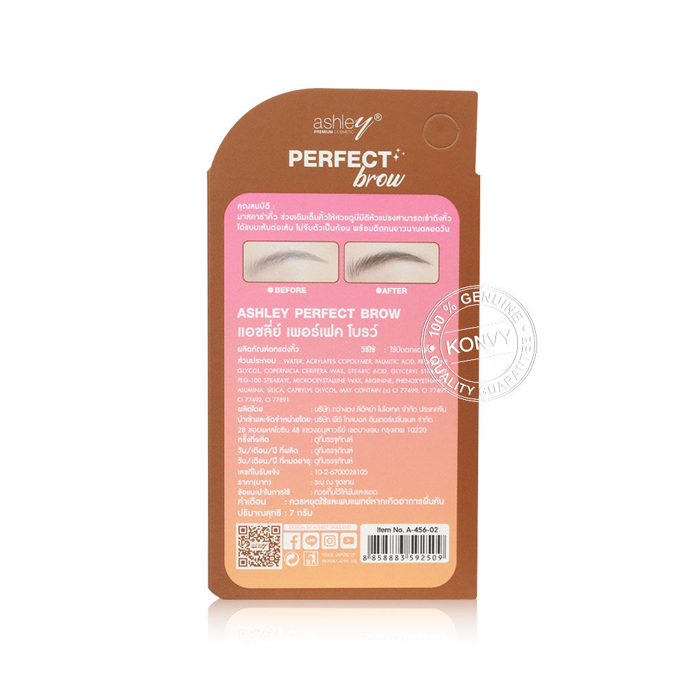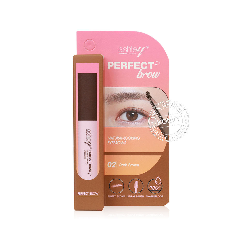 Ashley Perfect Brow 7g #02 Dark Brown มาสคาร่าคิ้วที่ช่วยเติมเต็มคิ้วให้ดูฟู มีมิติอย่างเป็นธรรมชาติ ใช้งานง่ายด้วยหัวแปรงเกลียวพิเศษ ช่วยปัดได้ทั่วถึงแม้ขนคิ้วเส้นเล็ก เนื้อสีชัดเจน ปัดแล้วไม่จับตัวเป็นก้อน ติดทนนาน กันน้ำและกันเหงื่อได้ดี ไม่เลอะระหว่างวัน มีให้เลือก 2 เฉดสี คือ Brown และ Dark Brown ใช้ได้กับทุกโทนสีผมและสีผิว ช่วยจัดทรงคิ้วให้อยู่ทรงสวยทั้งวัน มั่นใจได้ว่าคิ้วของคุณจะดูสวยเป็นธรรมชาติและดูมีวอลลุ่มแบบมืออาชีพ