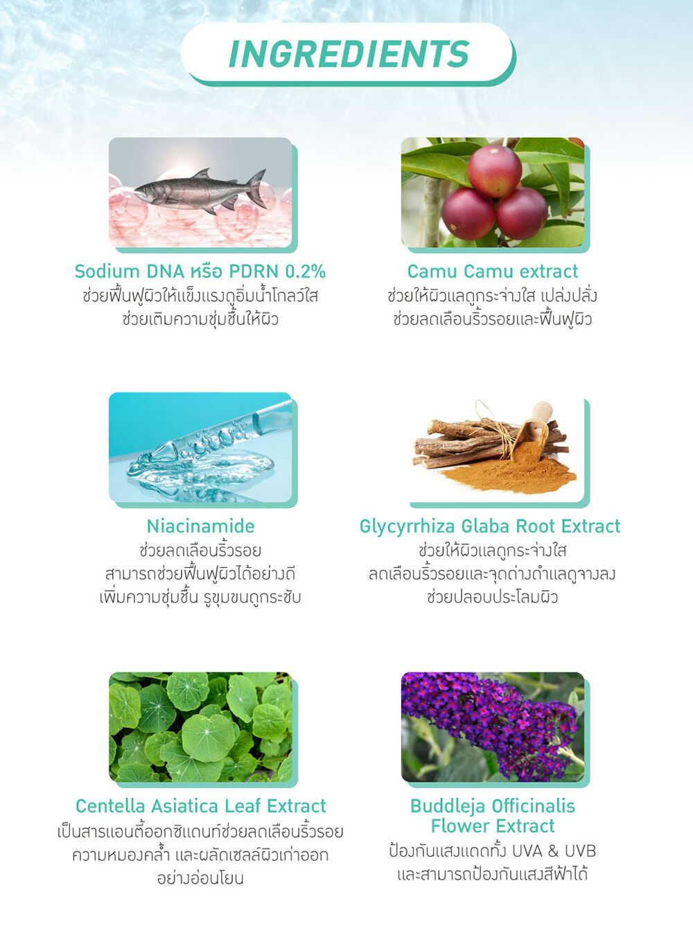 • ฟื้นบำรุงและเติมความชุ่มชื้นให้ผิวด้วยนวัตกรรมสารสกัด Sodium DNA จากปลาแซลมอน 0.2%