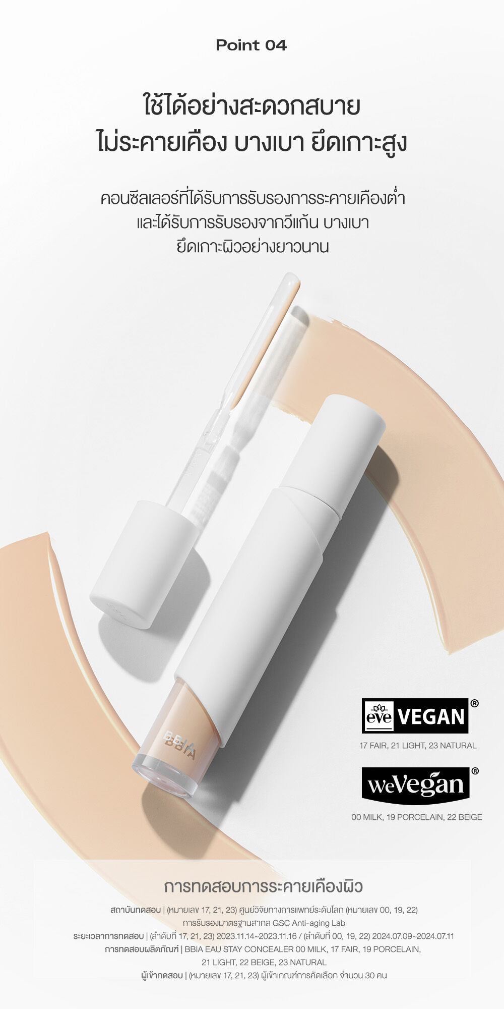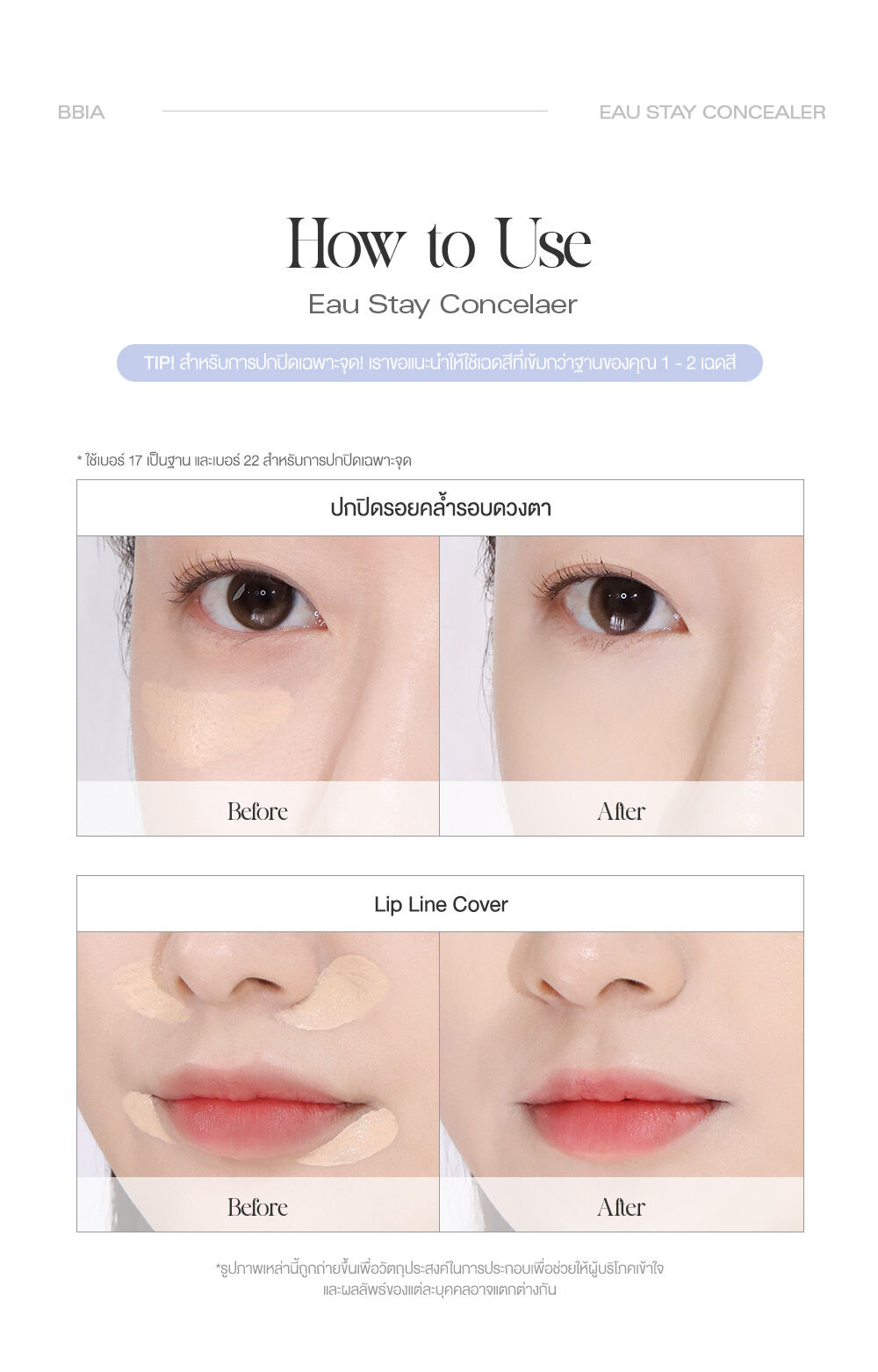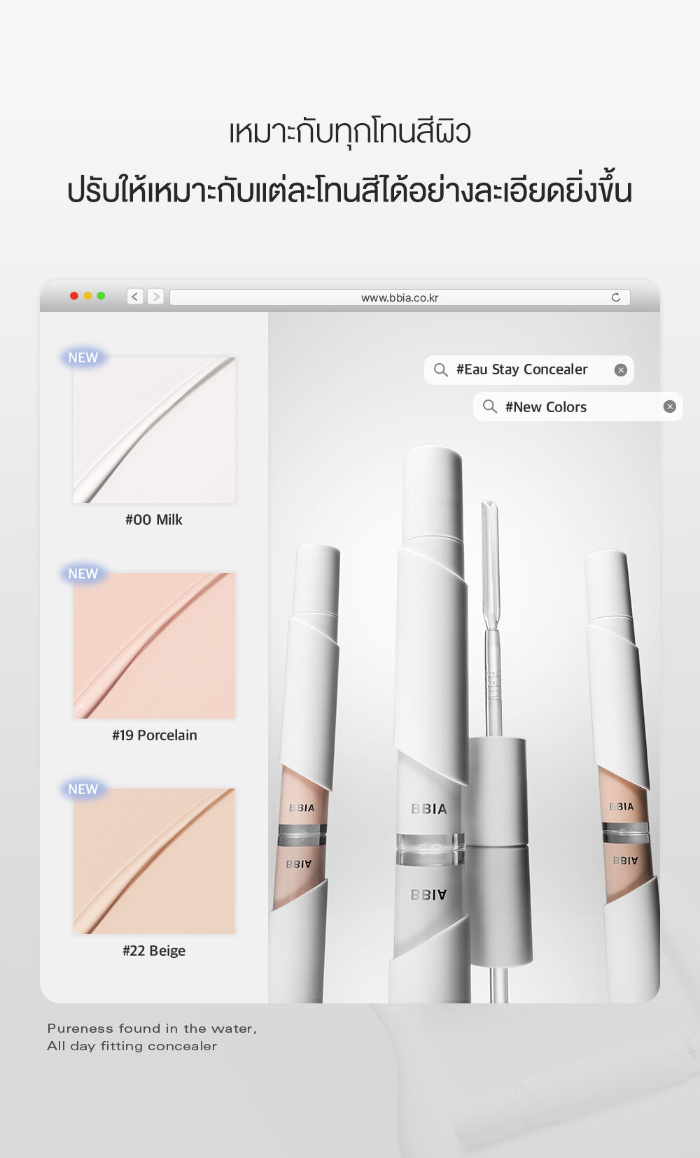 Bbia Eau Stay Concealer 8.5g #00 Milk คอนซีลเลอร์ 2in1 รูปแบบใหม่ที่มาพร้อมหัวแปรง Spatula เนื้อบางเบา เกลี่ยง่าย ติดทนนานตลอดวัน ช่วยปกปิดจุดบกพร่องได้อย่างเรียบเนียน ดูเป็นธรรมชาติ