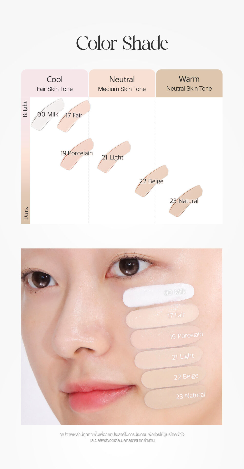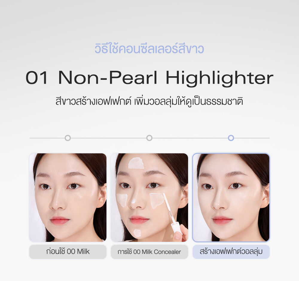 • #00 Milk สีขาว (เหมาะสำหรับใช้ผสมกับรองพื้น, บลัชออน หรือไฮไลท์)