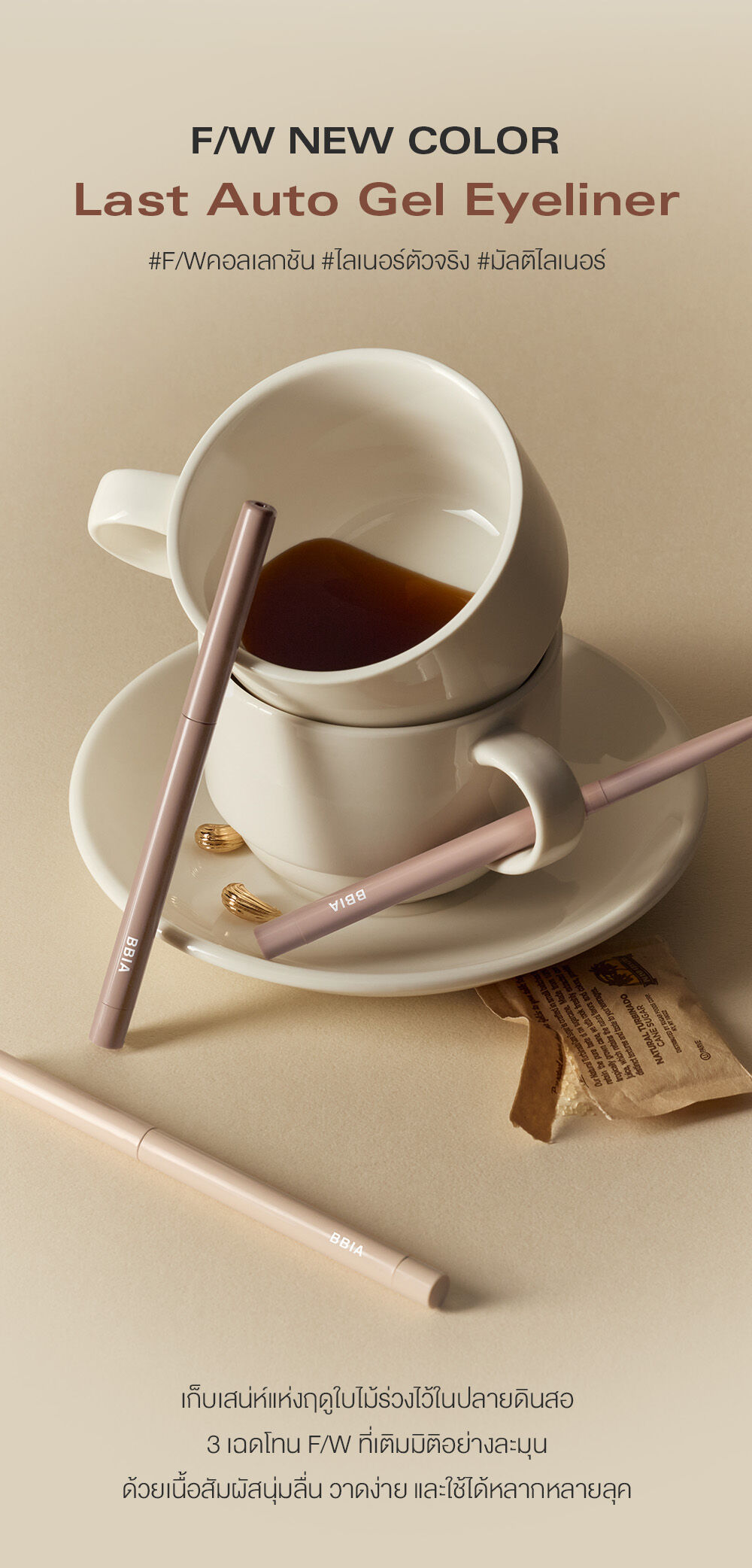 Bbia Last Auto Gel Eyeliner 0.3g #23 Pink Pastel ดินสอเขียนขอบตาเนื้อเจลนุ่มลื่น เขียนง่าย ไม่เลอะ กันน้ำ กันเหงื่อ ติดทนนาน ด้วยเส้นเล็กเพียง 3 มม. ให้เส้นคมกริบ เพิ่มมิติให้ดวงตาสวยเป๊ะตลอดวัน มาพร้อมที่เหลาในตัว ใช้งานสะดวก คอมพลีทลุคดวงตาให้ดูมีเสน่ห์ยิ่งขึ้น