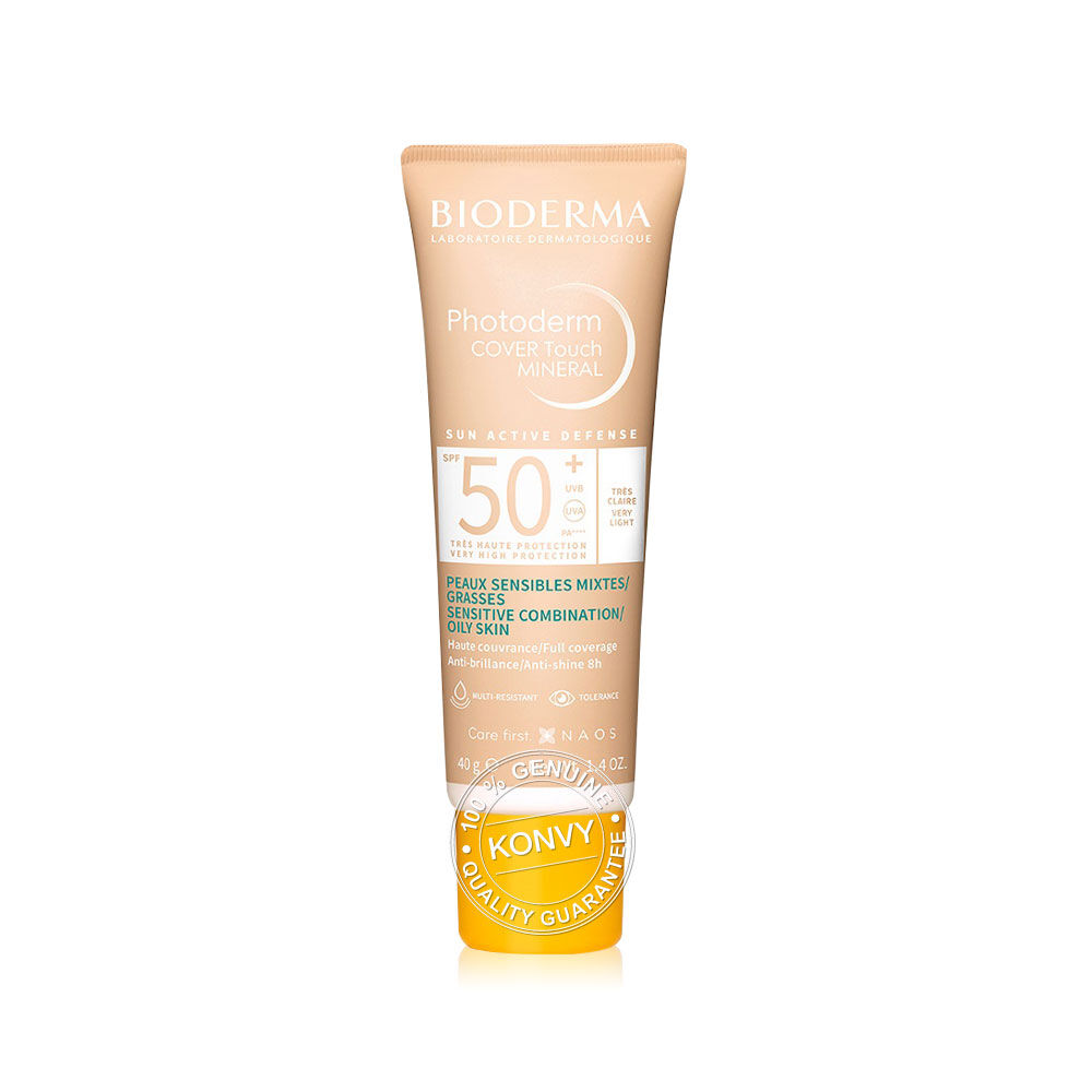 Bioderma Photoderm Cover Touch Mineral SPF50+ PA++++ 40ml #Very Light ครีมกันแดดสีเนื้อ สูตร 100% มิเนอรัล ช่วยปกปิดรอยสิว และปรับสีผิวให้เรียบเนียนแมทสม่ำเสมอ พร้อมคุมมันนาน 8 ชั่วโมง