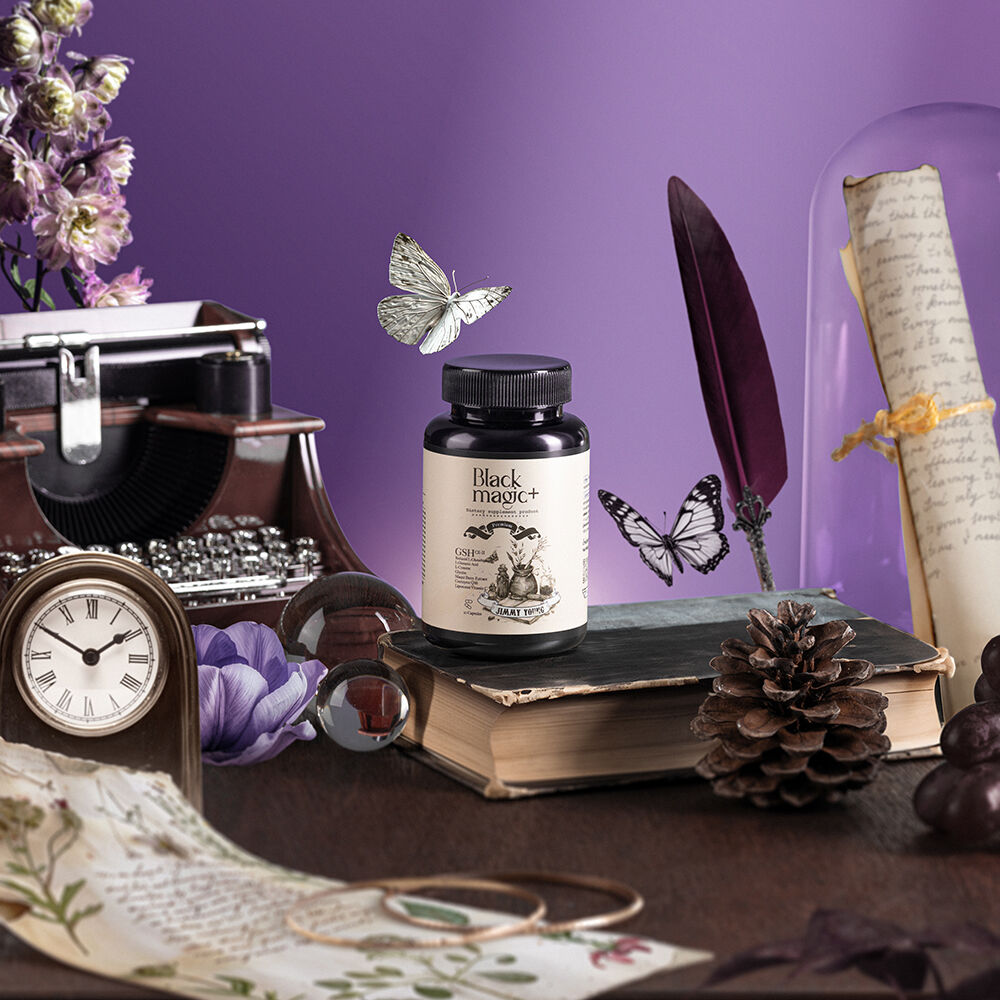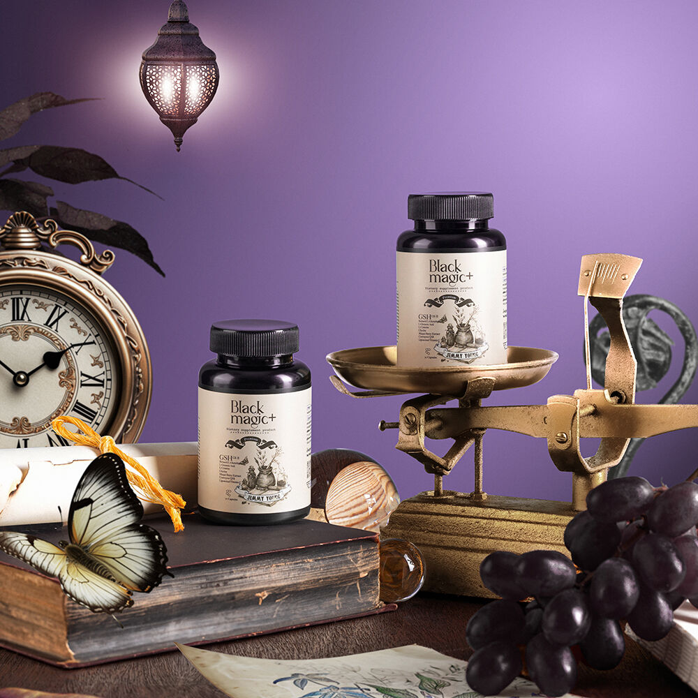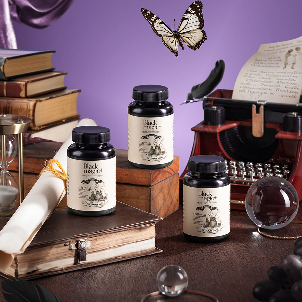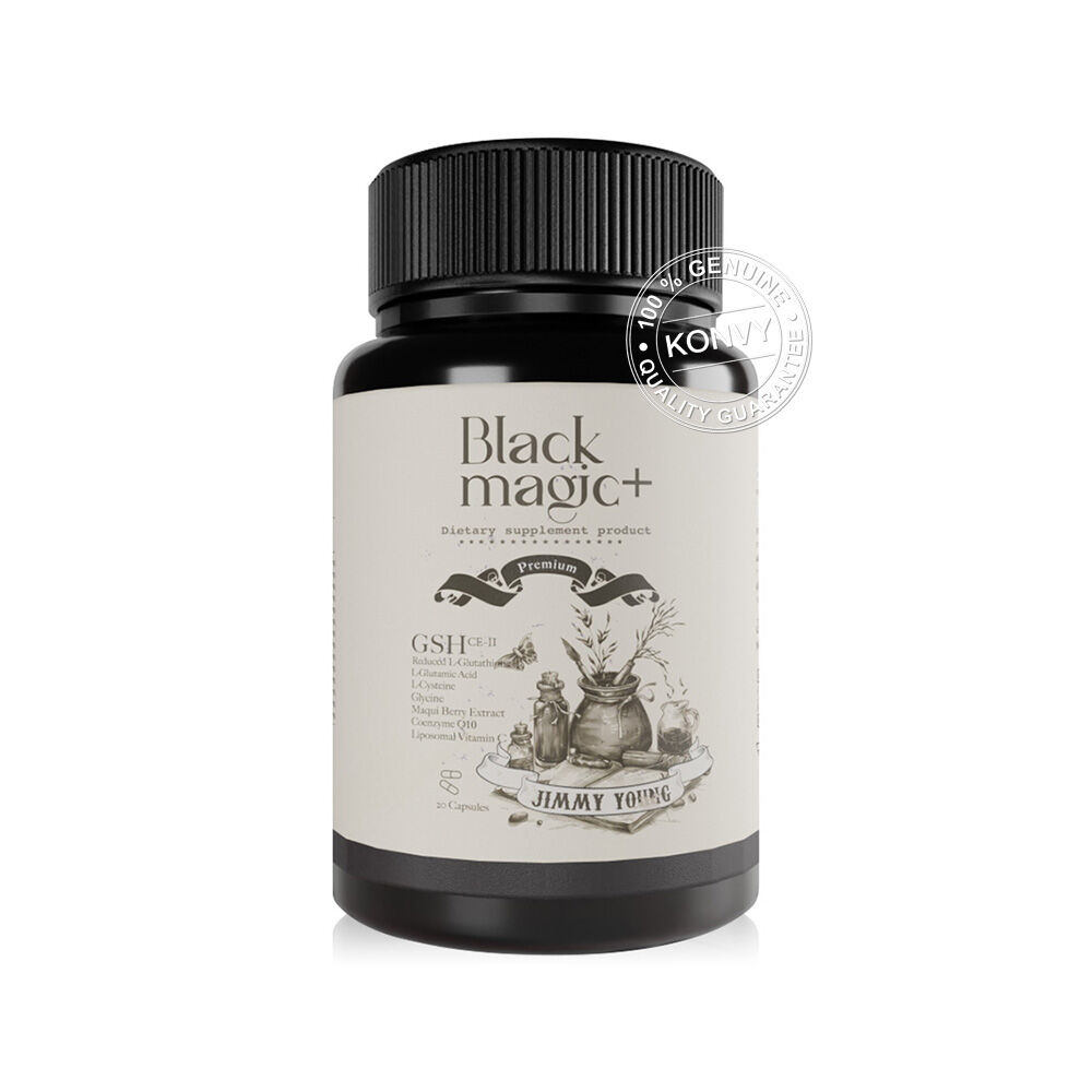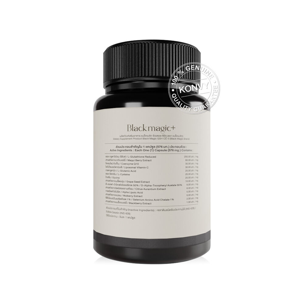 Black Magic Plus GSH CE-II [20 Capsules x 2pcs] ผลิตภัณฑ์เสริมอาหาร อุดมไปด้วยสาร Reduced L-Glutathione, L-Cysteine, Glycine และ Co-enzyme Q10 ทำหน้าที่ร่วมกับวิตามินซี ในรูปแบบ Liposomal วิตามินอี