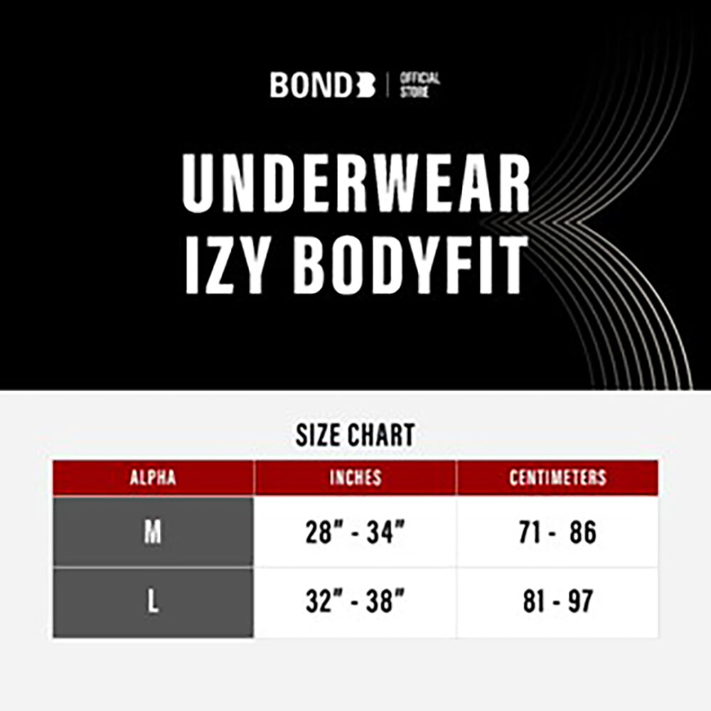 BOND Men's Underwear IZY BODYFIT Clothing Size M 1pc #Black กางเกงชั้นในผู้ชาย รุ่น IZY BODYFIT สีดำ ไซส์ M เป็นนวัตกรรมการผสม Spandex ขอบกางเกงชั้นในคงทนไม่ยืดไม่ย้วย เนื้อผ้าของกางเกงชั้นในถักทอละเอียดให้ความรู้สึกเย็น ลื่น เบาสบาย และ แห้งเร็ว ดีไซน์ที่กระชับกับสัดส่วนลดปัญหาเข้าร่องหรือไม่สบายตัวขณะเคลื่อนไหว