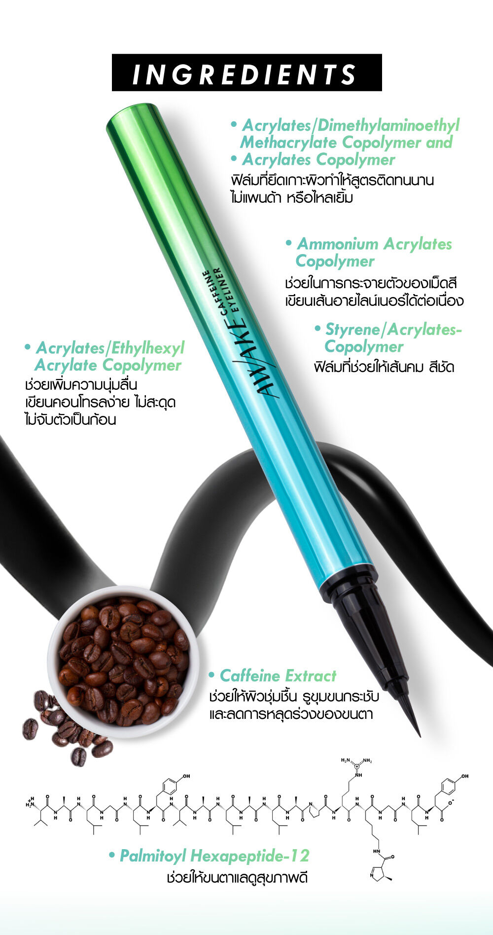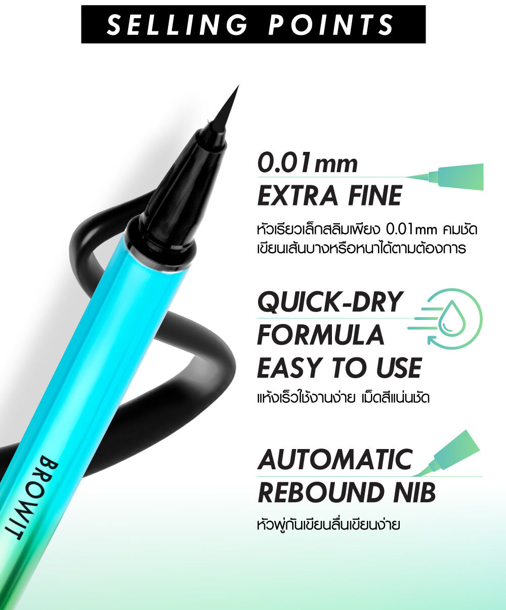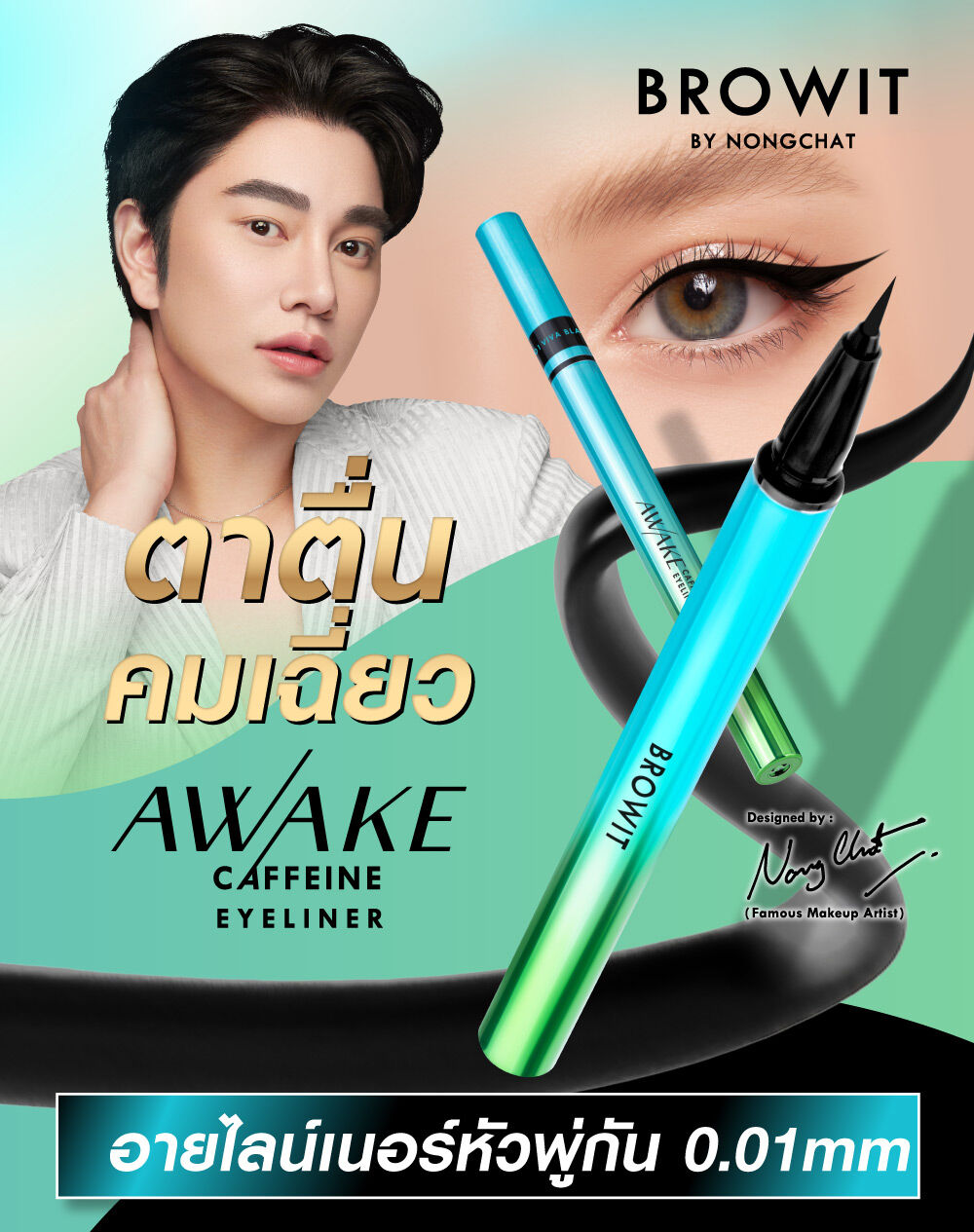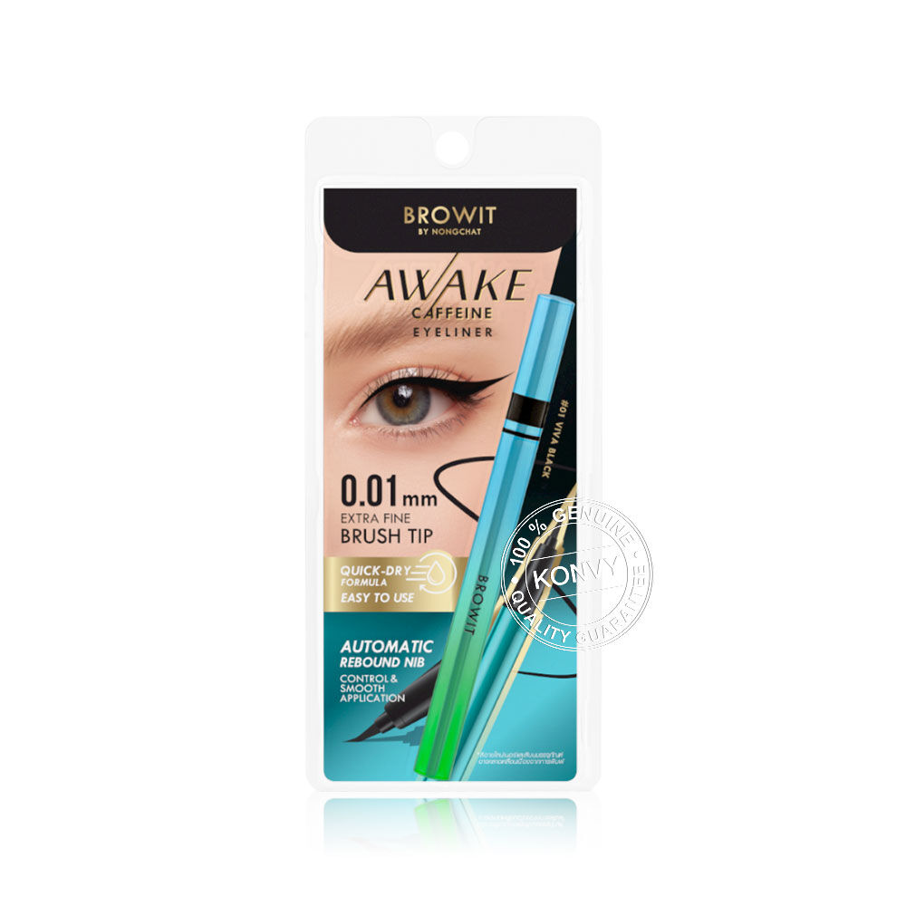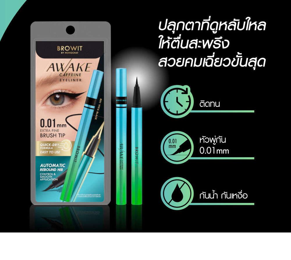 Browit Awake Caffeine Eyeliner 0.5ml #Viva Black #ตาตื่นคมเฉี่ยว อายไลน์เนอร์หัวพู่กันปลายเรียวเล็กเพียง 0.01mm มอบผลลัพธ์ให้ตากลมโต คมชัด ช่วยปลุกตาที่ดูหลับใหลให้ตื่นสะพรึง สวยคมเฉี่ยวขั้นสุด กรีดง่าย ไม่มีสะดุด เม็ดสีชัด ติดทน กันน้ำ กันเหงื่อ ผสานการบำรุงจากสารสกัดคาเฟอีน และเปปไทด์ Palmitoyl Hexapeptide-12 ช่วยบำรุงให้ผิวบริเวณที่กรีดอายไลน์เนอร์เนียนนุ่มและชะลอการเกิดริ้วรอย