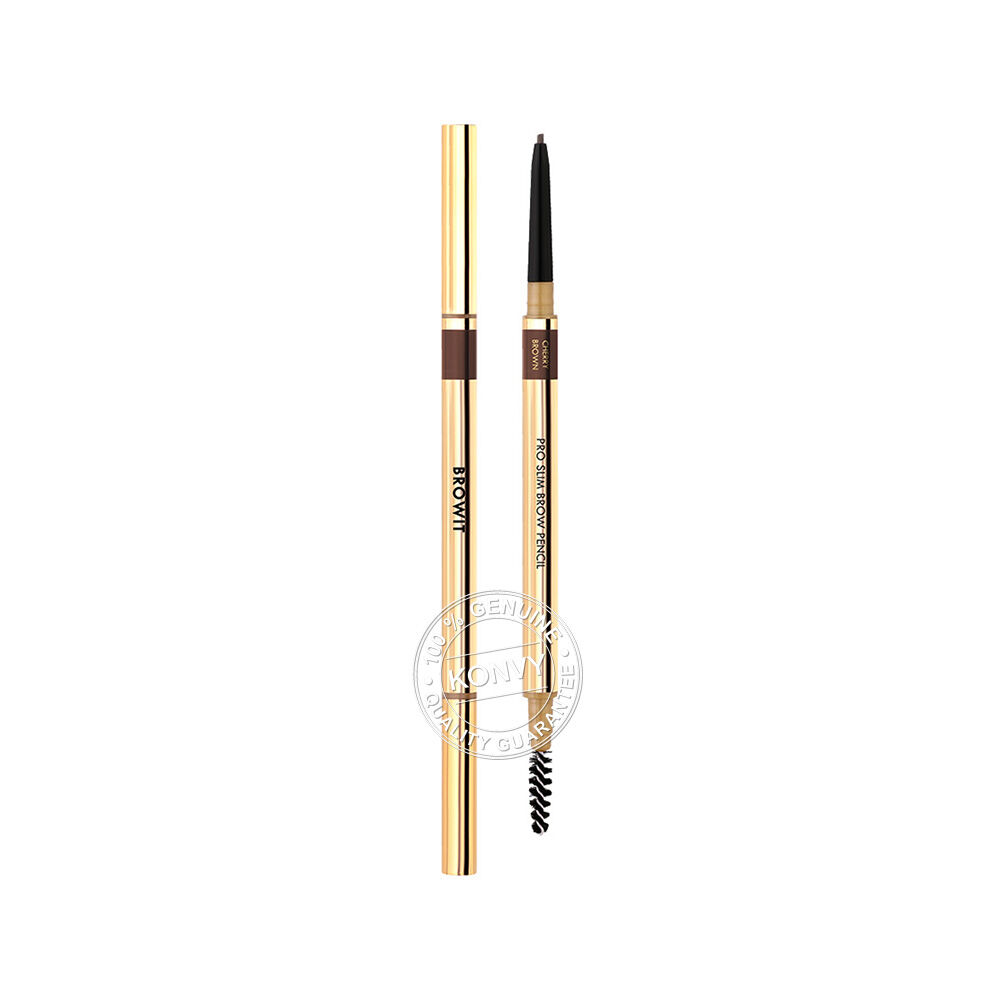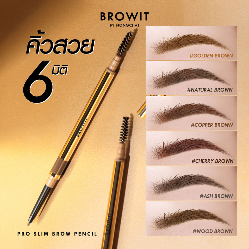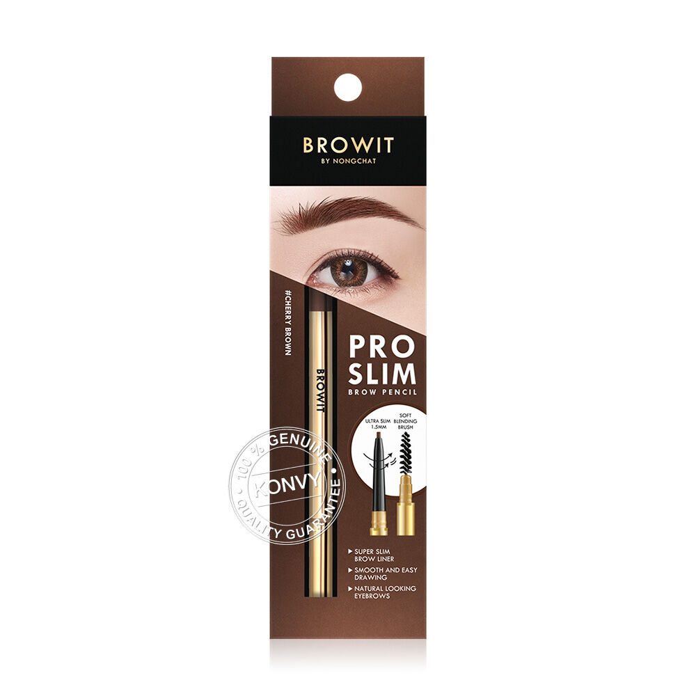 Browit Pro Slim Brow Pencil 0.06g #Cherry Brown [Y2021] ดินสอเขียนคิ้วเนื้อนุ่ม สีแน่นชัดในครั้งเดียว ให้เส้นที่คมสวยมีความเป็นธรรมชาติ ติดทนนาน ซึ่งออกแบบโดยน้องฉัตร-ฉัตรชัย เมคอัพอาร์ตติสต์ชื่อดังของเมืองไทย เนื้อดินสอคุณภาพดี ไม่เปราะหักง่าย สามารถใช้สร้างเส้นคิ้วแบบเส้นต่อเส้น ทำให้คิ้วสวยดูเป็นธรรมชาติ ทั้งยังใช้เก็บรายละเอียดคิ้วได้อย่างง่ายดาย มาพร้อมแปรงปัดคิ้วที่ขนนุ่ม ไม่แข็ง ไม่ก่อให้เกิดการระคายเคืองกับผิวบริเวณคิ้ว