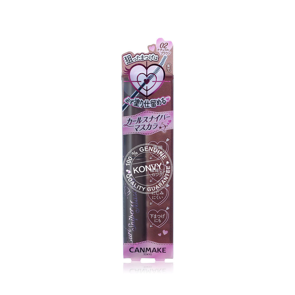 Canmake Curl Sniper Mascara 4g #02 มาสคาร่าสูตรแว็กซ์พิเศษ เนื้อนุ่มลื่น ปัดง่าย กันน้ำ กันเหงื่อ ไม่จับตัวเป็นก้อน ติดทนไม่เลอะเลือน มาพร้อมหัวแปรงเล็กเรียวยาวเป็นพิเศษ มีความโค้งงอนรับกับแนวขนตา ทำให้สามารถปัดขนตาได้ตั้งแต่โคนจรดปลายได้ง่าย พร้อมล็อคขนตาให้เรียงเส้นสวย มอบฟินิชลุคขนตาสวยงอนเด้ง ดูเป็นธรรมชาติ