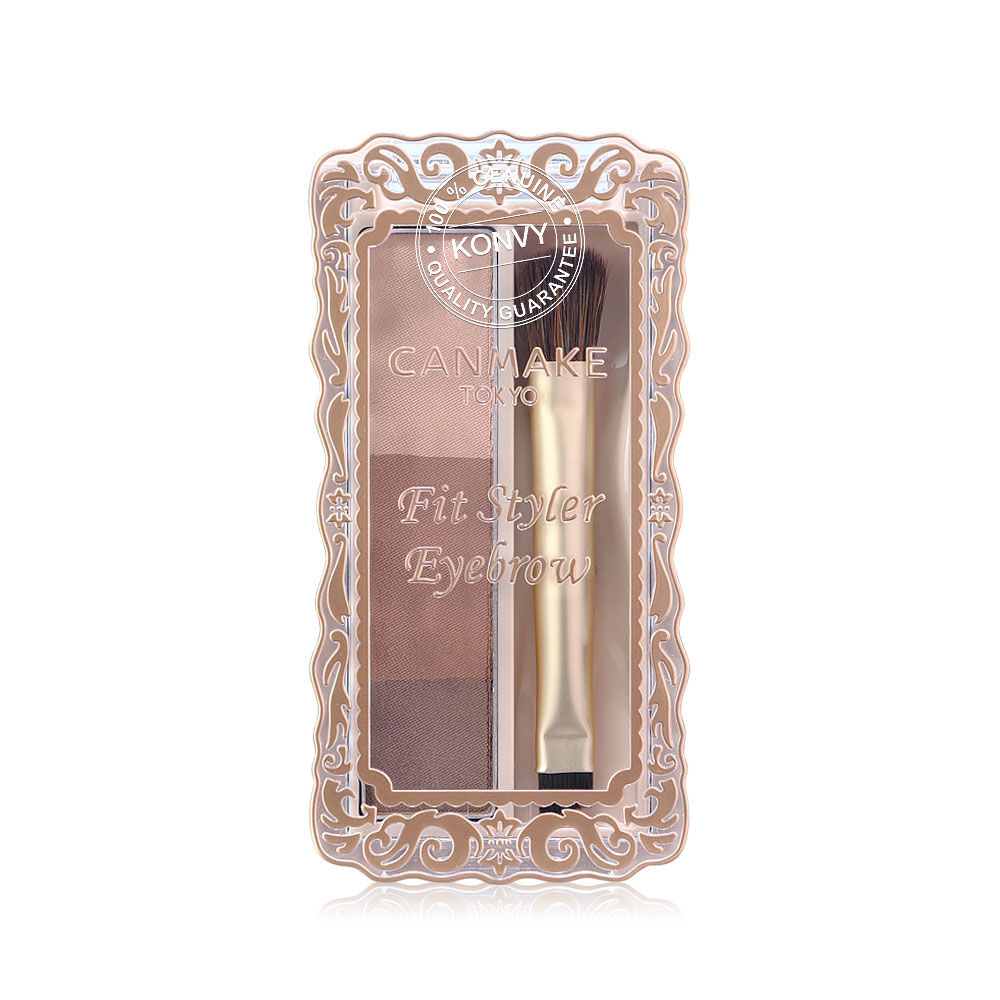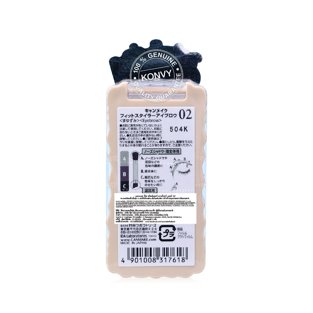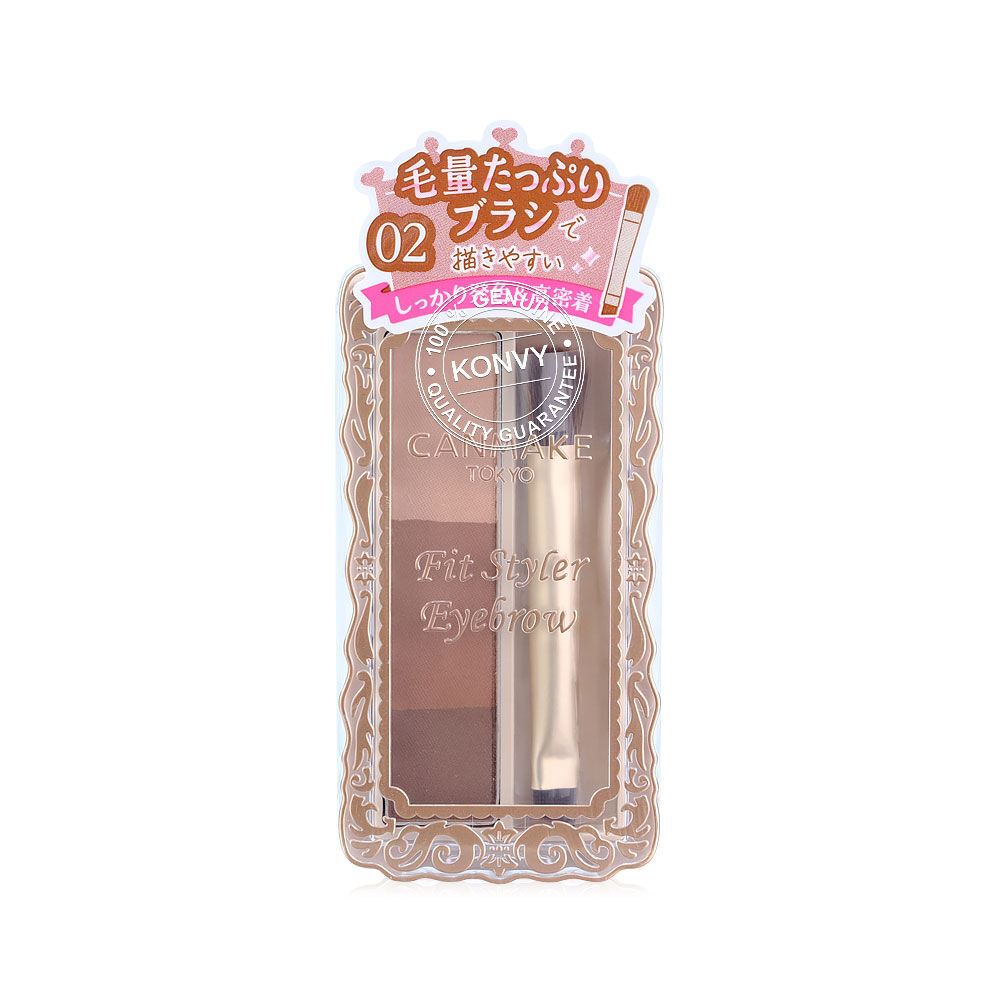 Canmake Fit Styler Eyebrow 2g #02 พาเลทเขียนคิ้วเนื้อฝุ่น 3 เฉดสีไล่โทนอ่อน-เข้มในตลับเดียว เม็ดสีชัด เกลี่ยง่าย กันน้ำ กันเหงื่อ ไม่เป็นก้อน ติดทนนาน ช่วยสร้างโครงคิ้วให้มีมิติ ดูเป็นธรรมชาติ มาพร้อมแปรงสองหัวในตลับ ใช้งานง่าย มอบฟินิชคิ้วสวยอย่างมืออาชีพ