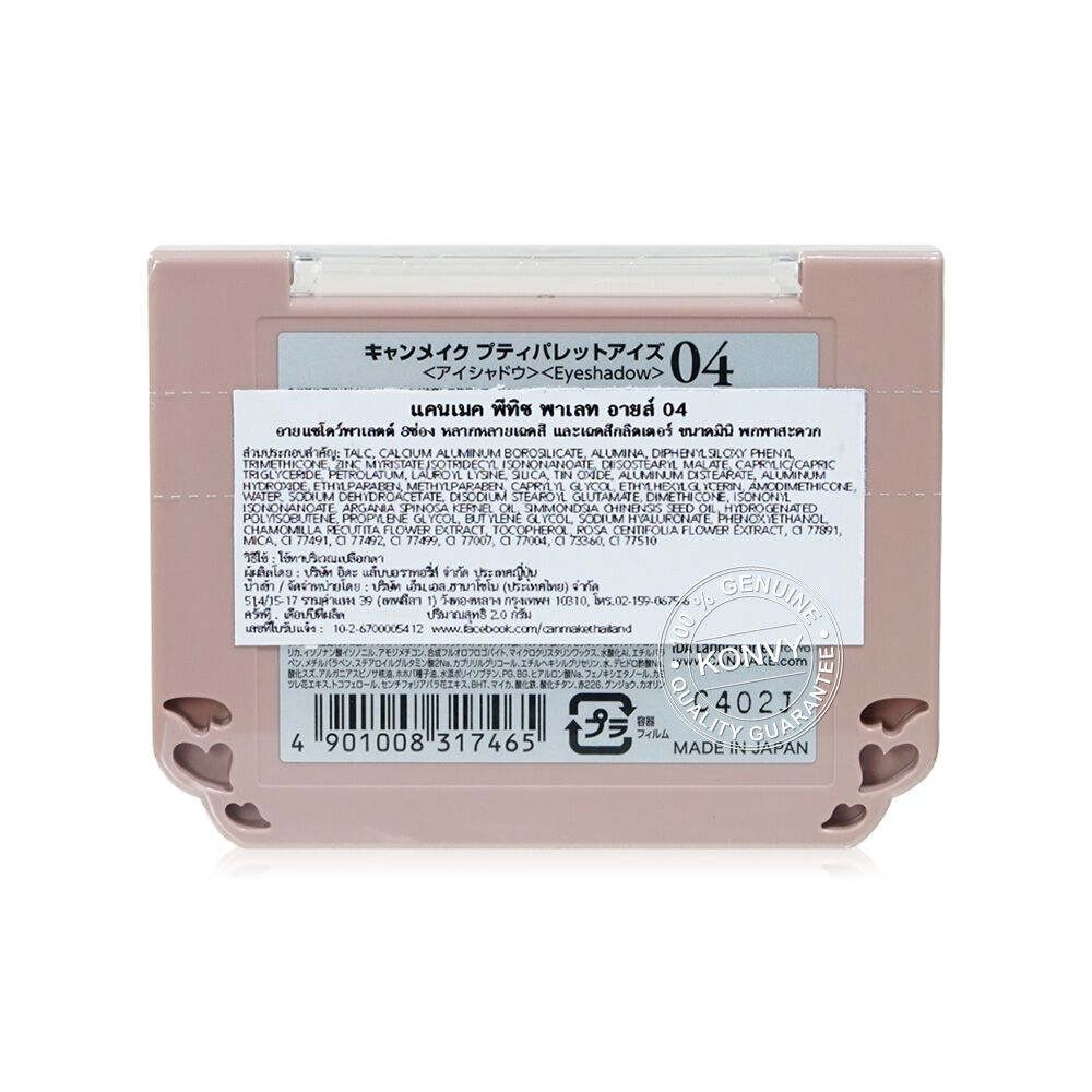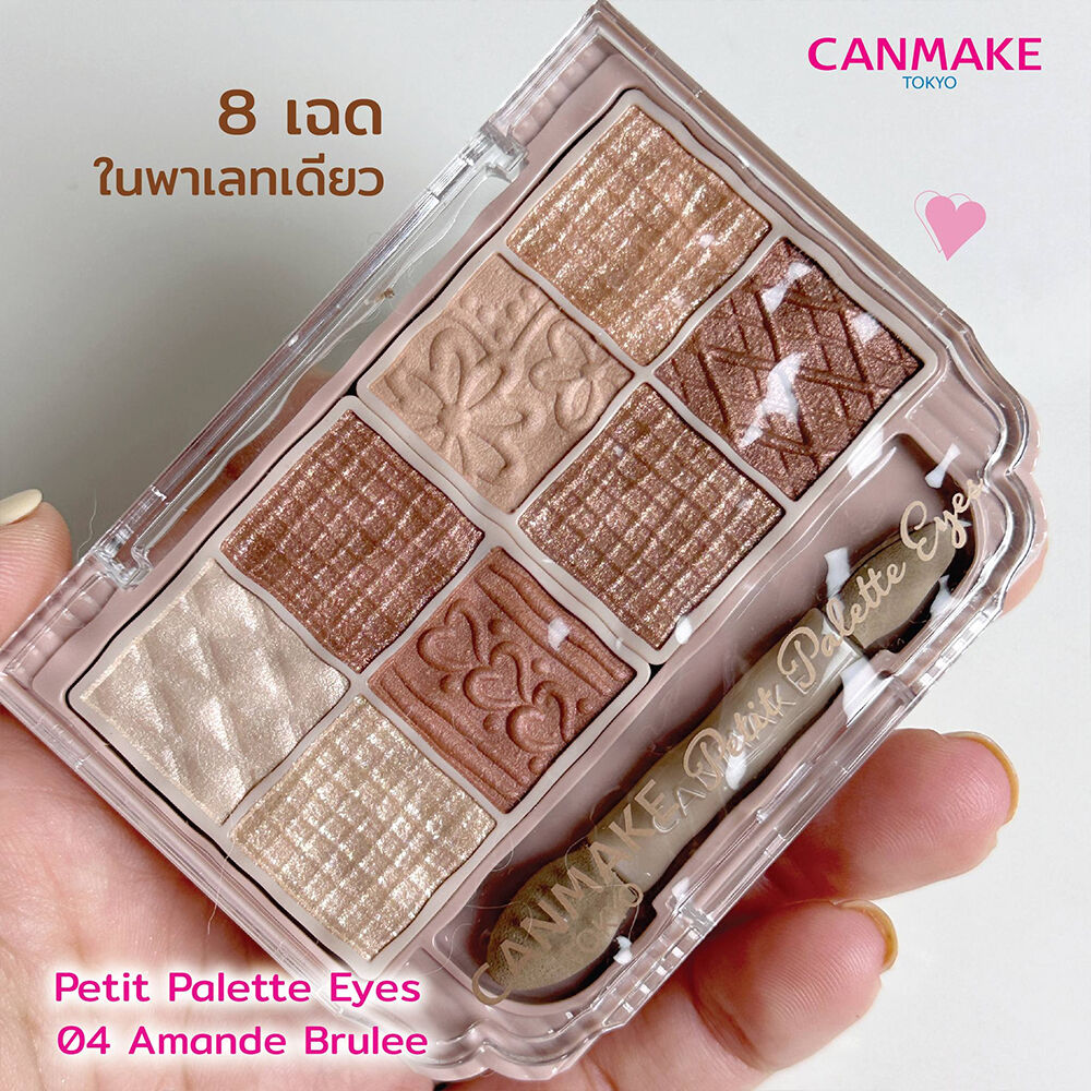 Canmake Petit Palette Eyes 2g #04 Amande Brulee พาเลทมินิอายแชโดว์ 8 เฉดสี มีทั้งเนื้อแมท เพิร์ล และกลิตเตอร์ เพิ่มลูกเล่นให้ดวงตาดูมีเสน่ห์ยิ่งขึ้น ครีเอทลุคดวงตาสวยในแบบที่คุณต้องการได้ทุกที่ ง่ายต่อการพกพา สวย จบ ครบ ในพาเลทเดียว