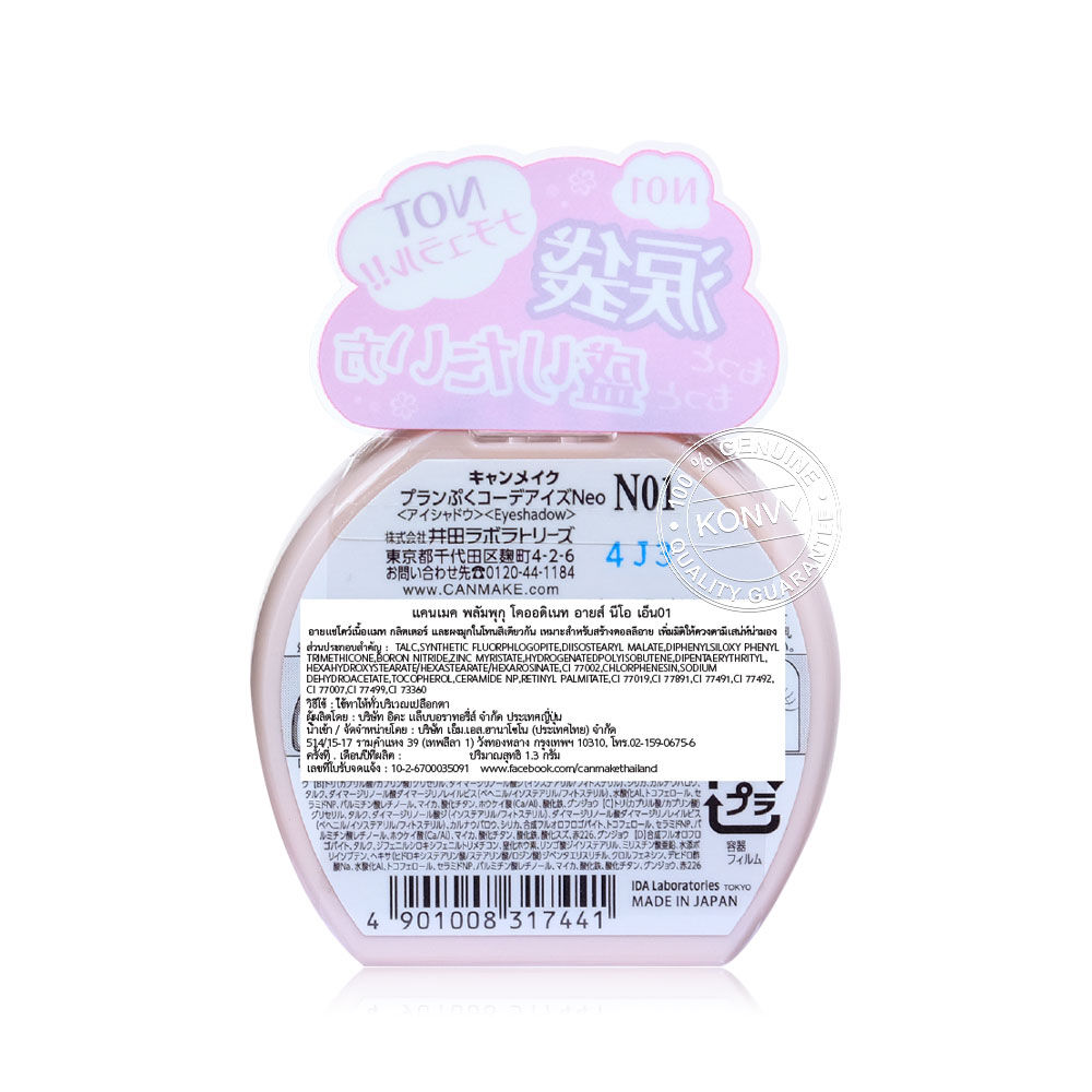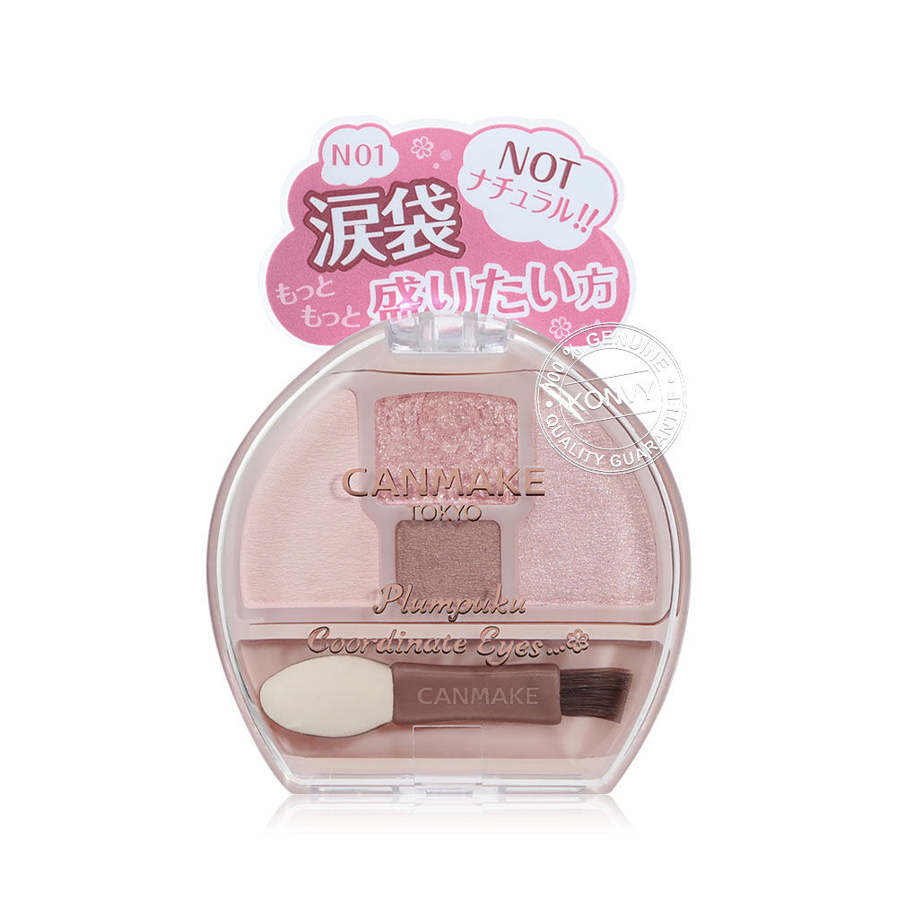 Canmake Plumpuku Coordinate Eyes Neo 1.3g #N01 Shiratama อายแชโดว์พาเลทสำหรับสร้างดอลลี่อายโดยเฉพาะ รุ่นพิเศษ มาพร้อม 3 เฉดสีและคอนทัวร์ เพื่อเพิ่มมิติ มีครบทั้งเนื้อแมท, มุก และกลิตเตอร์ ให้สัมผัสเนียนนุ่มดุจกำมะหยี่ สีชัด เกลี่ยง่าย ติดทนนาน ให้ฟินิชลุคที่ดูเป็นธรรมชาติ เนรมิตดวงตาให้ป๊อบอัพและโดดเด่นมากกว่าเคย