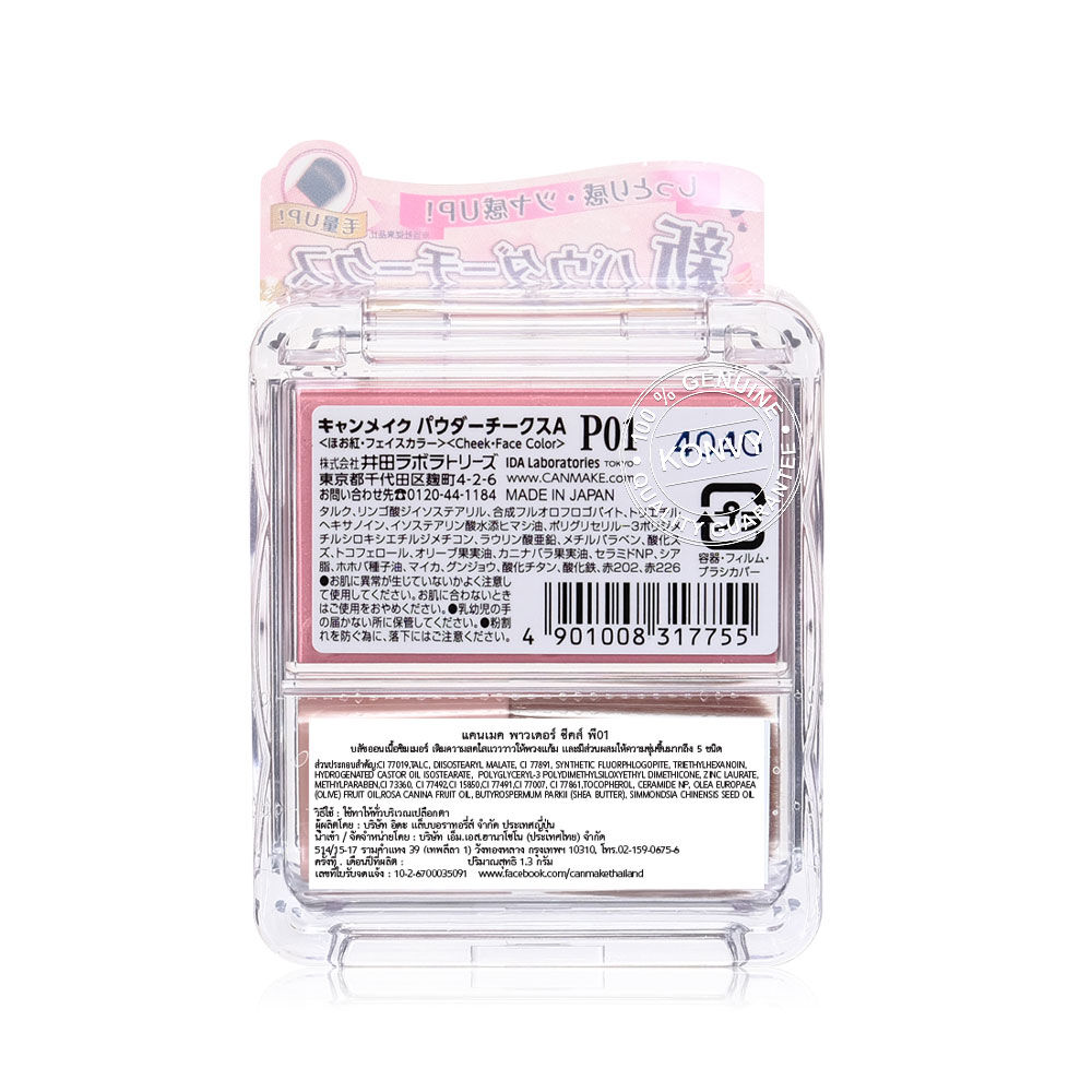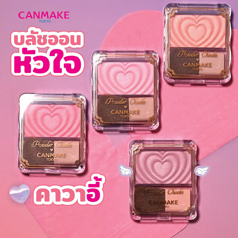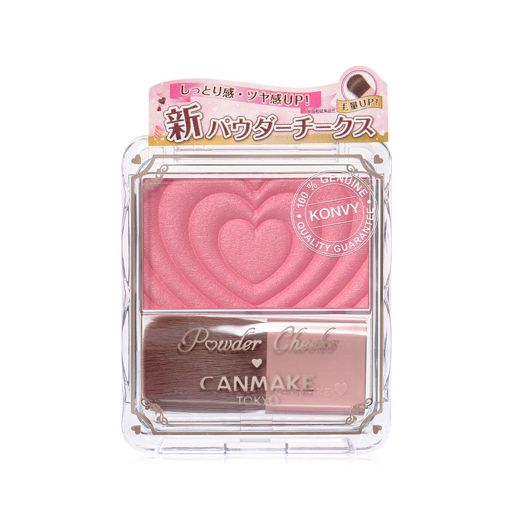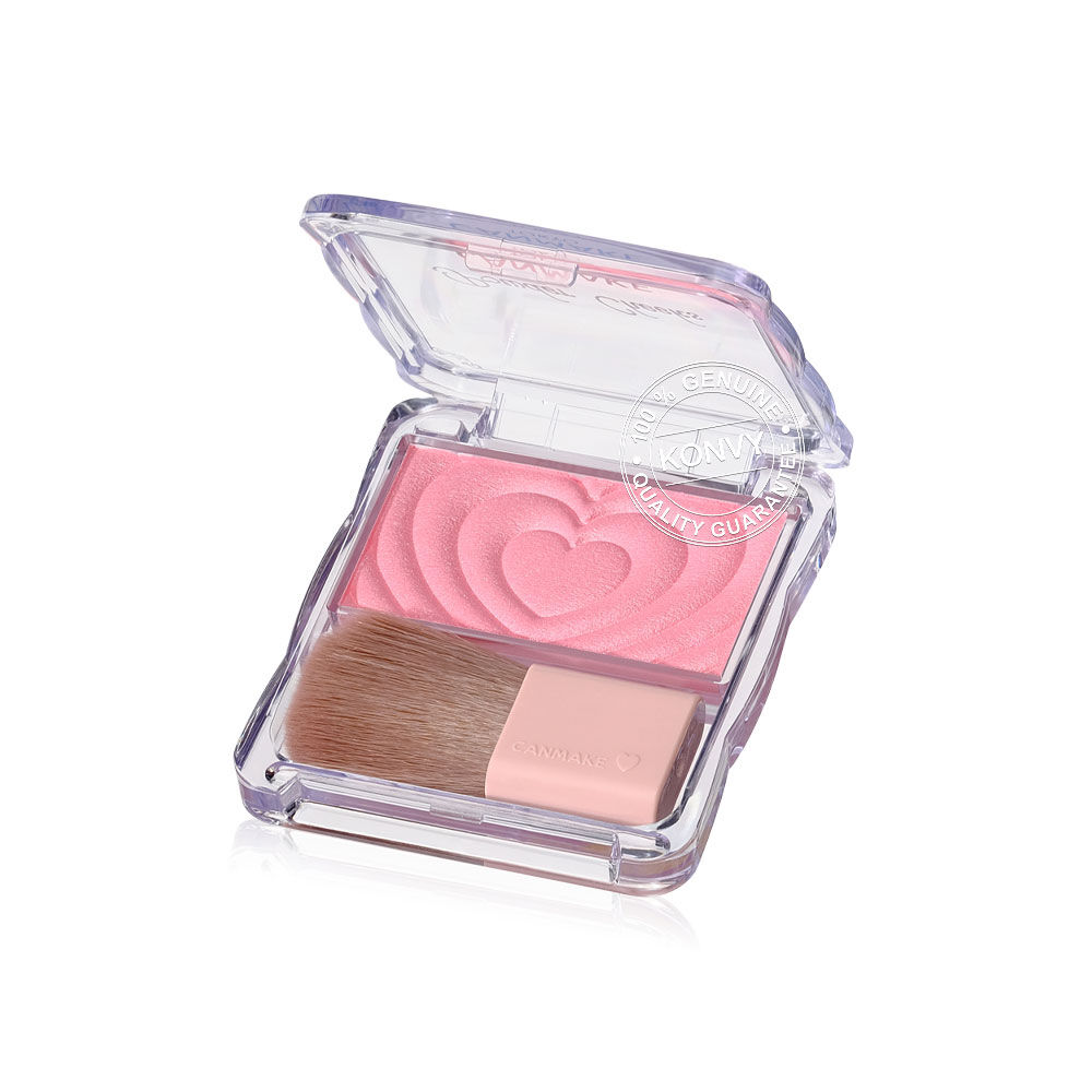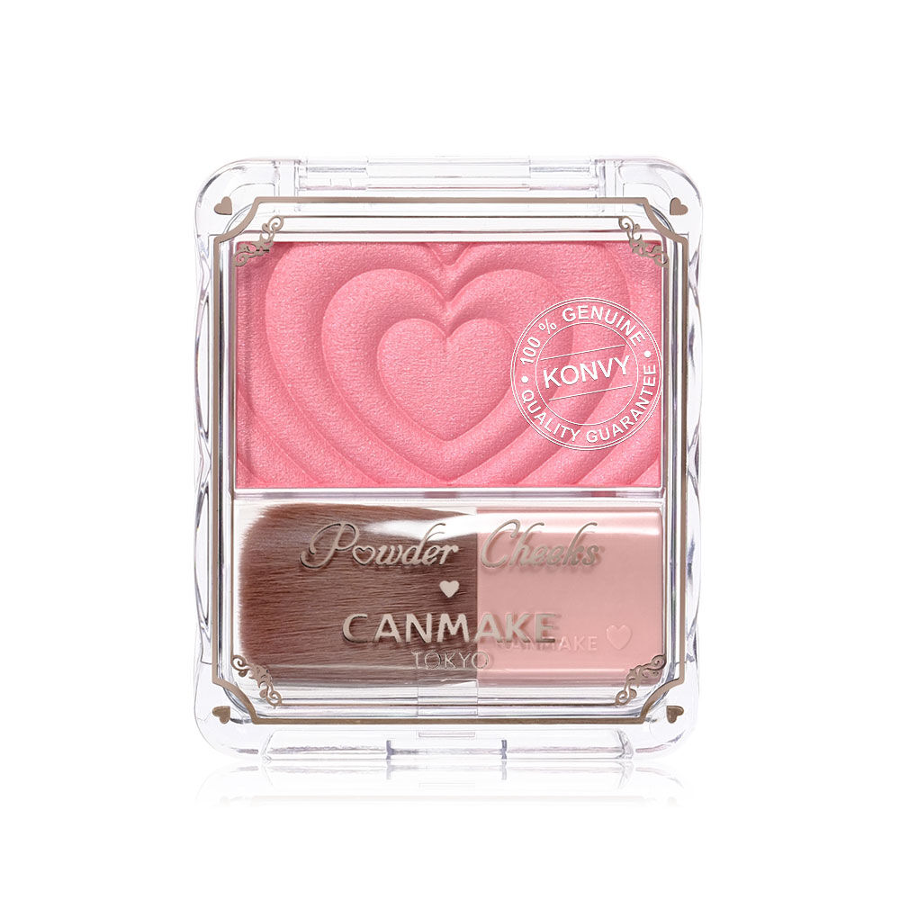 Canmake Powder Cheeks 1.8g #P01 Powerful Pink บลัชออนเนื้อฝุ่นโปร่งแสง เกลี่ยง่าย เบาสบายผิว ติดทนนาน ให้ฟินิชลุคที่ดูกลืนไปกับผิว มีส่วนผสมของผงไข่มุกเนื้อเนียนละเอียด มอบงานผิวที่เปล่งประกายแวววาว ผสานส่วนผสมจากน้ำมันมะกอก, โรสฮิปออยล์, โจโจ้บาออยล์, Shea Butter และ Ceramide NP ช่วยเติมความชุ่มชื้นให้ผิว มาพร้อมดีไซน์ลายหัวใจสุดน่ารัก