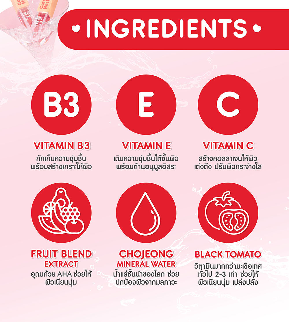 • สารสกัดจาก Chojeong Mineral Water และ Black Tomato ช่วยให้ปากอวบอิ่ม