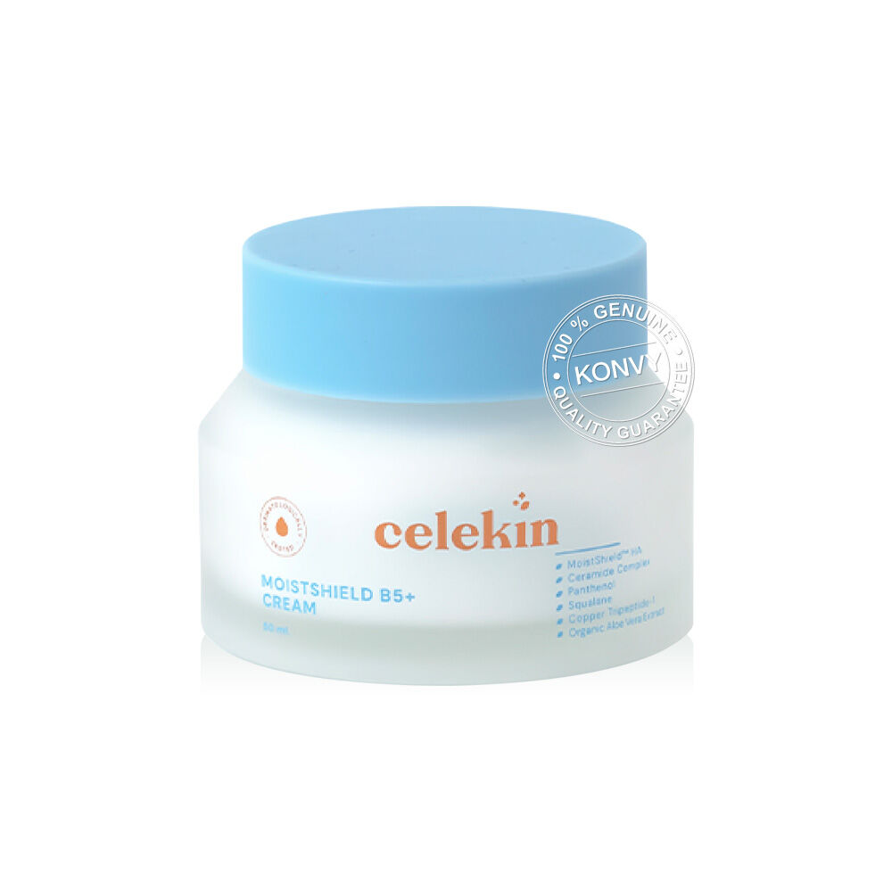 Celekin Moisturizer MoistShield B5+ 50ml มอยเจอร์ไรเซอร์สูตร Ultra Repair เนื้อครีมเจลลี่ บางเบา ไม่มันเยิ้ม ผสานพลังโมเลกุลและสารสกัดออร์แกนิค ด้วย Active Ingredients อันได้แก่ MoistShield Hya8, Ceramide Complex, Panthenol, Squalene, Copper Tripeptide-1 และ Organic Aloe Vera Extract ช่วยเติมและกักเก็บน้ำในผิวให้ผิวชุ่มชื้นยาวนาน ลดเลือนรอยแดง และปลอบประโลมผิว ลดการระคายเคืองผิว พร้อมเสริมปราการผิวให้แข็งแรง เผยผิวเนียนนุ่ม ดูอิ่มฟู สุขภาพดี