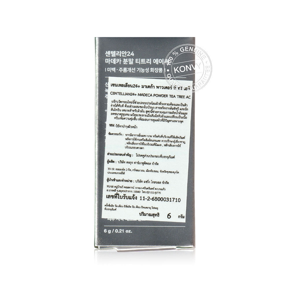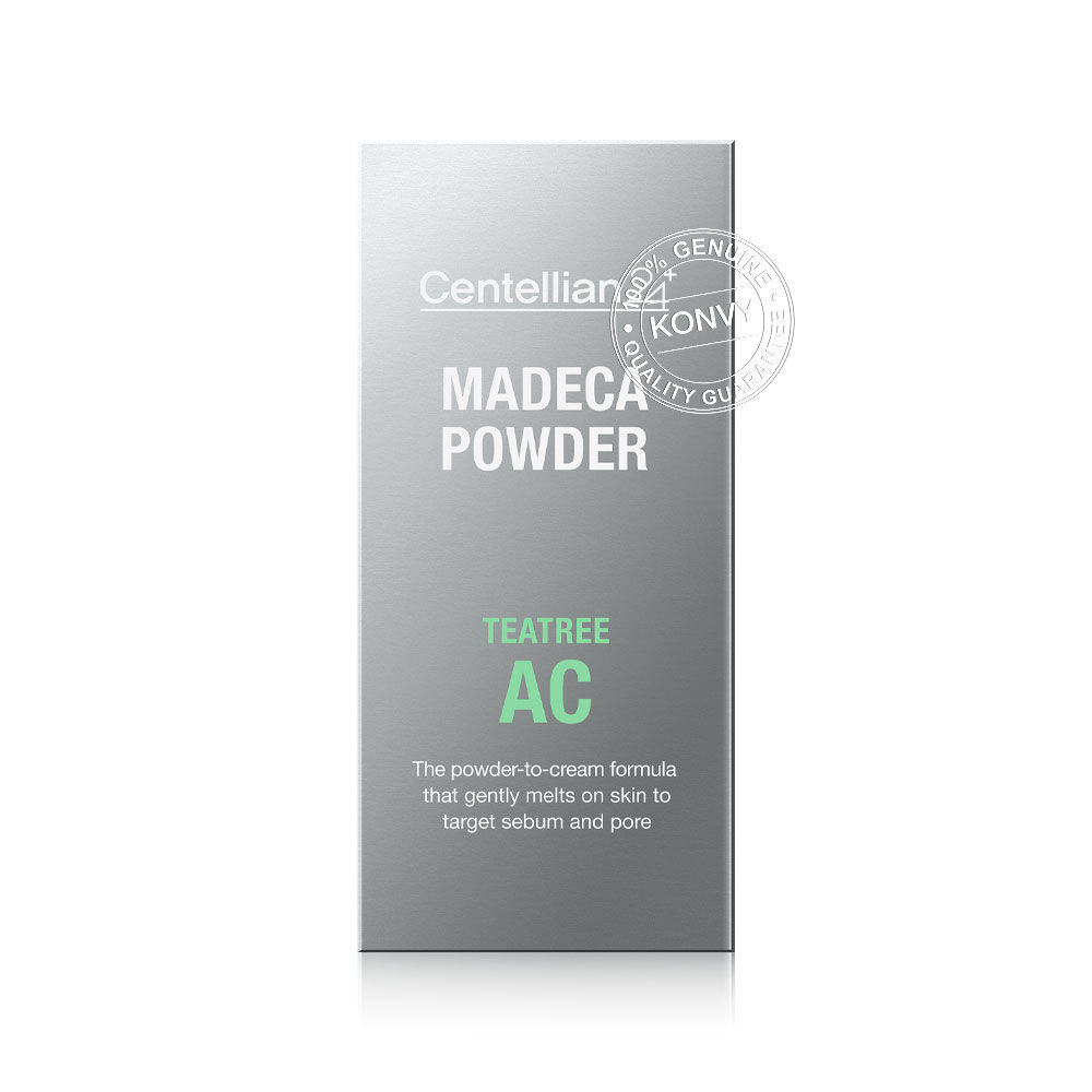 Centellian24 Madeca Powder Tea Tree AC 6g ผงทีทรีเข้มข้นพิเศษ ที่ละลายเป็นครีมทันทีที่สัมผัสผิว ช่วยปลอบประโลมผิวอักเสบ-เป็นสิวง่าย ลดความมัน และช่วยให้รูขุมขนดูเล็กลง มอบความรู้สึกสดชื่น พร้อมปรับสมดุลผิว
