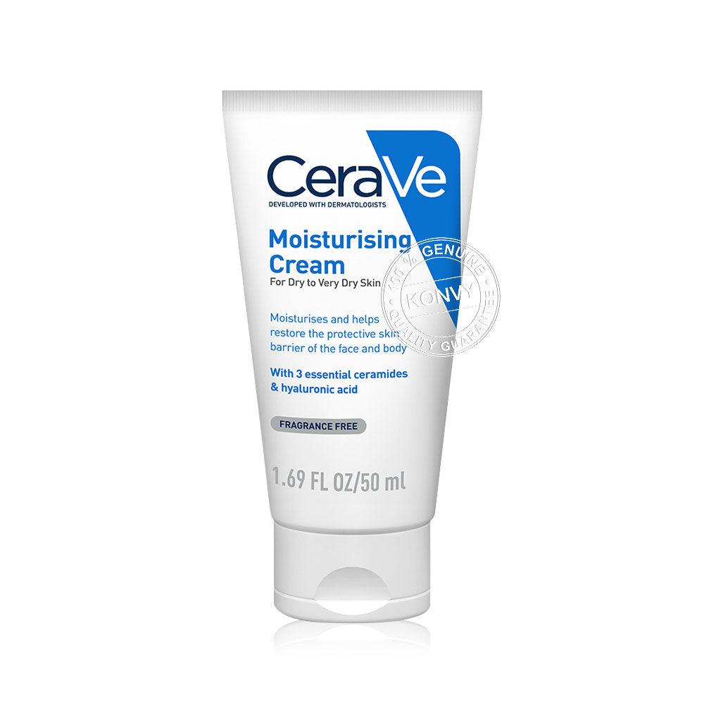 CeraVe Buy 1 Get 1 Moisturising Cream 454ml + [Free! Moisturising Cream 50ml] ครีมบำรุงผิวหน้าและผิวกาย สูตรสำหรับผิวแห้งถึงแห้งมาก เนื้อครีมเข้มข้น ซึมซาบเร็ว ไม่เหนียวเหนอะหนะ ช่วยเติมเต็ม 3 เซราไมด์ที่จำเป็นต่อผิว พร้อมด้วยเทคโนโลยี MVE ลิขสิทธิ์เฉพาะของเซราวี ค่อยๆ กระจายส่วนผสมของไฮยาลูโรนิค แอซิดและเซราไมด์สามชนิดที่จำเป็นลงสู่ผิวได้ต่อเนื่องตลอดวัน เหมาะสำหรับผิวบอบบางแพ้ง่าย เนื้อครีมสูตรปราศจากน้ำมันและปราศจากน้ำหอมที่มีส่วนผสมของเซราไมด์ช่วยกักเก็บความชุ่มชื้นให้แก่ผิว ขณะช่วยฟื้นฟูผิวให้แลดูสุขภาพดี