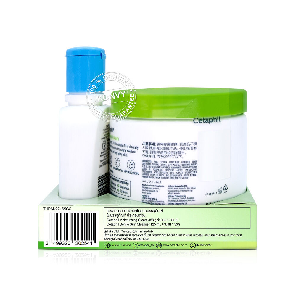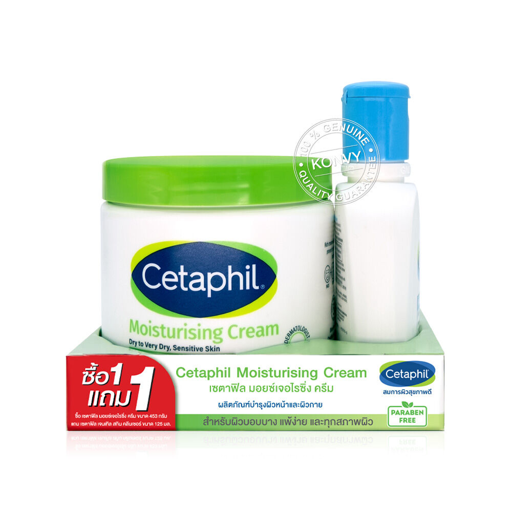 Cetaphil Moisturize Cream 453g [Free! Cleanser 125ml] ครีมบำรุงเนื้อเข้มข้นแต่ซึมซาบเร็ว อ่อนโยนและปลอดภัยต่อผิว เหมาะสำหรับผิวบอบบาง ผิวแพ้ง่าย ผิวลอกแห้ง แสบแดง หรือเป็นโรคผิวหนัง ช่วยฟื้นปราการเกราะปกป้องผิวให้แข็งแรง และคืนผิวนุ่มชุ่มชื้น แถมฟรี คลีนเซอร์เพื่อผิวบอบบางแพ้ง่าย และทุกสภาพผิว ปราศจากสบู่ และน้ำหอม สามารถใช้เป็นประจำได้ทุกวันไม่ระคายเคืองผิว ล้างออกง่าย คงความชุ่มชื้น ทำให้ผิวอ่อนนุ่ม เรียบ และแข็งแรง สามารถใช้ทำความสะอาดได้แม้กระทั่งผิวของทารก