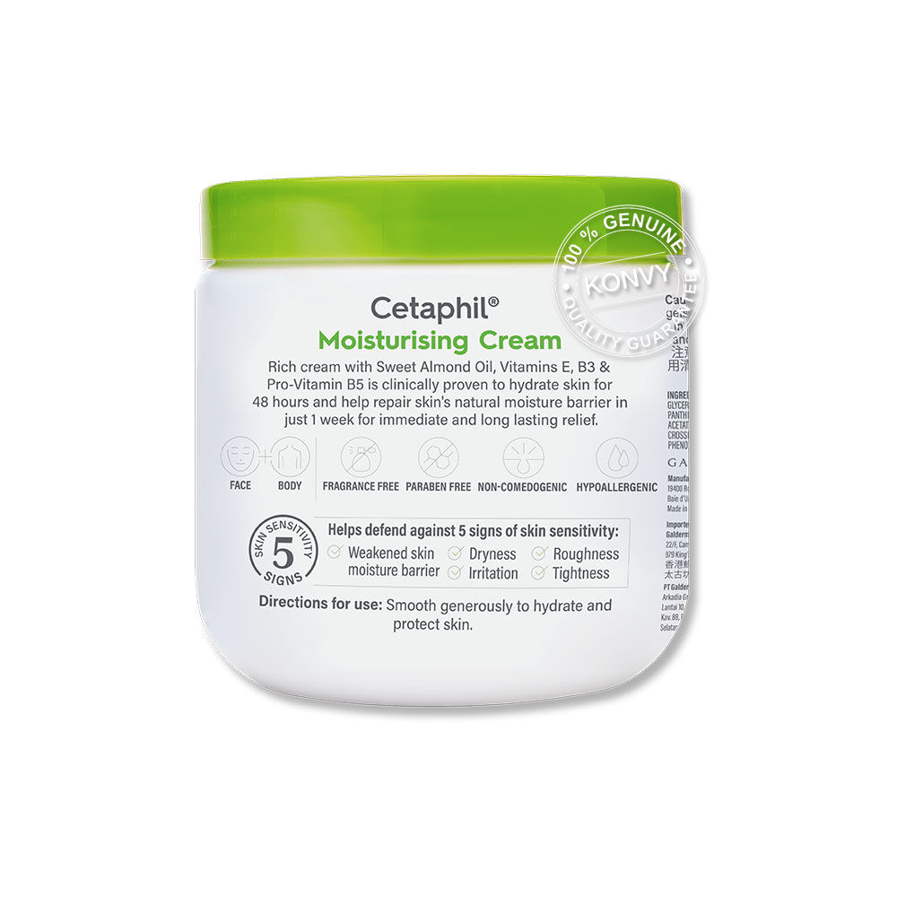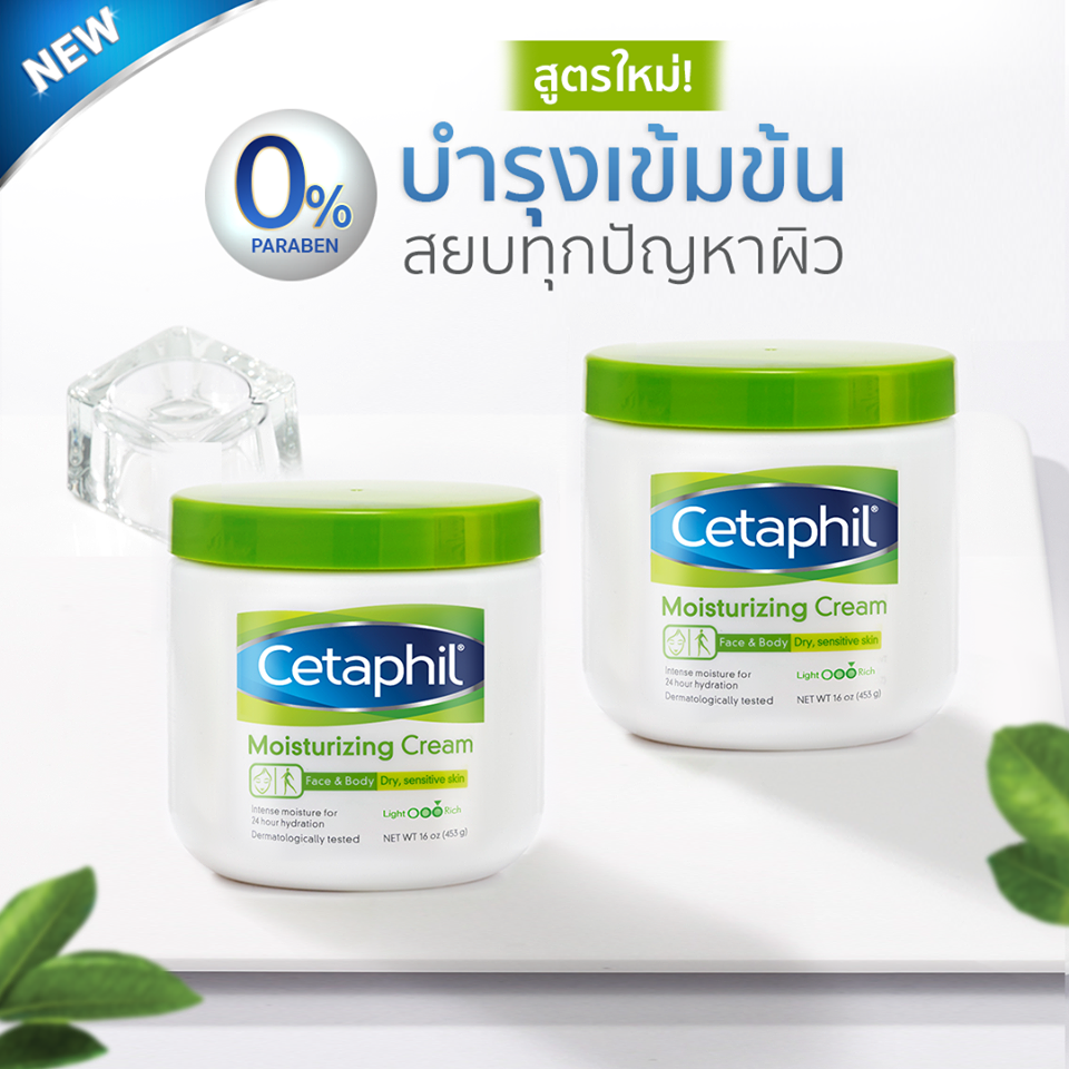 Cetaphil Moisturizing Cream For Dry,Sensitive Skin 453g ผลิตภัณฑ์บำรุงผิวหน้าและผิวกาย เติมความชุ่มชื่นให้ผิวด้วยส่วนผสมทรงประสิทธิภาพจาก Emollients และ Humectants ช่วยนำความชุ่มชื่นเข้าสู่ผิว พร้อมปกป้องการสูญเสียความชุ่มชื่นของผิวนานยิ่งขึ้น เนื้อครีมนุ่มเนียน สามารถซึมซาบเข้าสู่ผิวโดยไม่ทิ้งความมันส่วนเกิน ใช้ได้กับทุกส่วนในร่างกาย แม้ผิวหน้าที่บอบบาง
