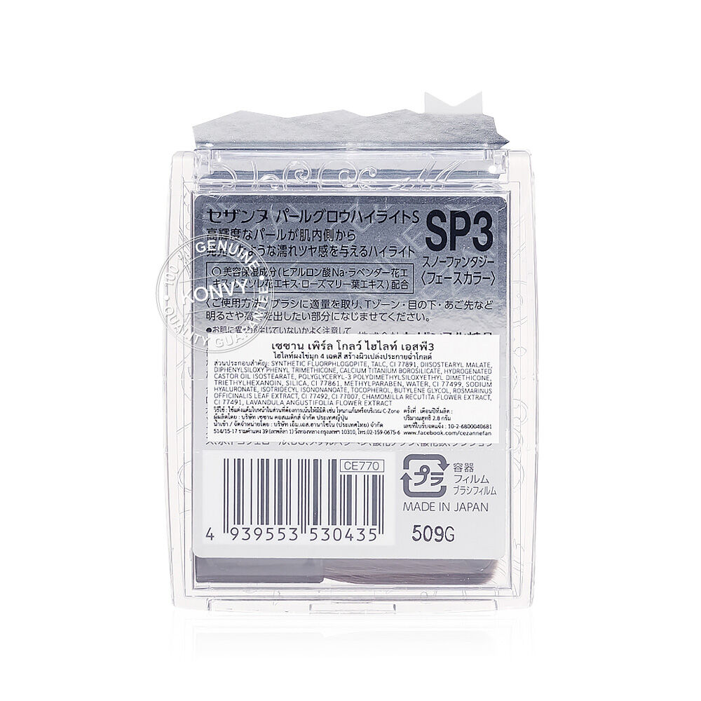 Cezanne Pearl Glow Highlight 2.8g #SP3 Snow Fantasy ไฮไลท์ประกายมุกรุ่นลิมิเต็ดอิดิชัน ออกแบบพิเศษลาย Snowflakes ที่ส่องประกายระยิบระยับ รวมไฮไลท์ถึง 4 สี เพื่อลุคที่ดูโกลว์ฉ่ำวาว ติดทนนาน ผสานส่วนผสมจาก Sodium Hyaluronate, สารสกัดจากดอกลาเวนเดอร์, ดอกคาโมมายล์ และใบโรสแมรี่ ช่วยเติมความชุ่มชื้นให้ผิว พร้อมมีผงไข่มุกเนื้อละเอียด ช่วยบำรุงผิวให้เรียบเนียน กระจ่างใส ให้ผิวดูมีออร่า เปล่งประกายดุจดังม่านแสงในเทพนิยาย