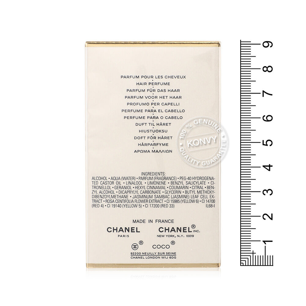 Chanel Coco Mademoiselle Hair Perfume 35ml สเปรย์น้ำหอมสำหรับเส้นผมที่มาพร้อมองค์ประกอบของกลิ่นหอมอันสดชื่น เบาสบาย และอ่อนละมุนเป็นที่สุดของน้ำหอม Coco Mademoiselle ซึ่งประกอบด้วยกลิ่นสดใสของส้ม กลิ่นอ่อนหวานในแบบผู้หญิงของกุหลาบและจัสมิน รวมถึงกลิ่นหอมเย้ายวนของเวทิเวอร์และพัตชูลี่ สูตรน้ำหอมที่ได้รับการออกแบบมาสำหรับเส้นผมโดยเฉพาะนี้อุดมด้วยสารให้ความชุ่มชื้นช่วยให้ผมดูนุ่มสลวยดุจแพรไหมโดยไม่ทำให้เส้นผมรู้สึกหนักหรือแห้ง