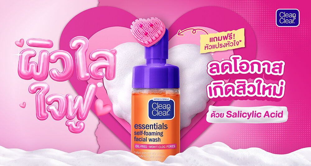 Clean & Clear Self Foaming Facial Wash 150ml x 2pcs [Free! Heart Cleansing Brush 2 pcs] เจลล้างหน้าแบบหัวปั๊มโฟมชนิดพิเศษ สูตรปราศจากน้ำมัน เนื้อเจลเปลี่ยนเป็นเนื้อโฟมเนียนนุ่ม ช่วยจัดการสิ่งสกปรก และความมันส่วนเกินแบบหมดจด ควบคุมความมันยาวนานตลอดวัน พร้อมส่วนผสมสารแอนไทด์-แบคทีเรีย ช่วยลดสาเหตุของการเกิดสิว สิวเสี้ยน ให้ผิวหน้าสะอาด เคลียร์ใส โดยไม่ทำให้ผิวเสียความชุ่มชื้นแห้งตึงหลังล้างหน้า