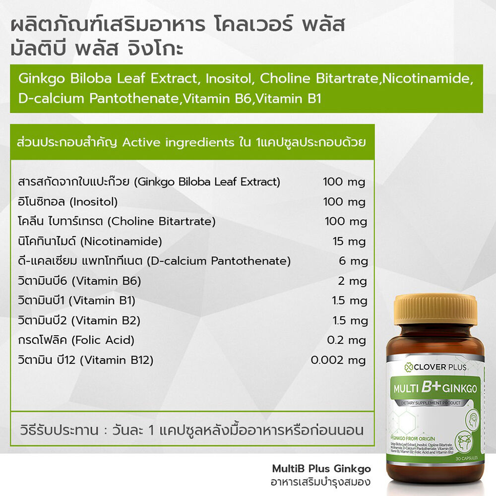Clover Plus Multi B+ GINKGO 30 Capsules ผลิตภัณฑ์เสริมอาหารสารสกัดจากใบแปะก๊วย