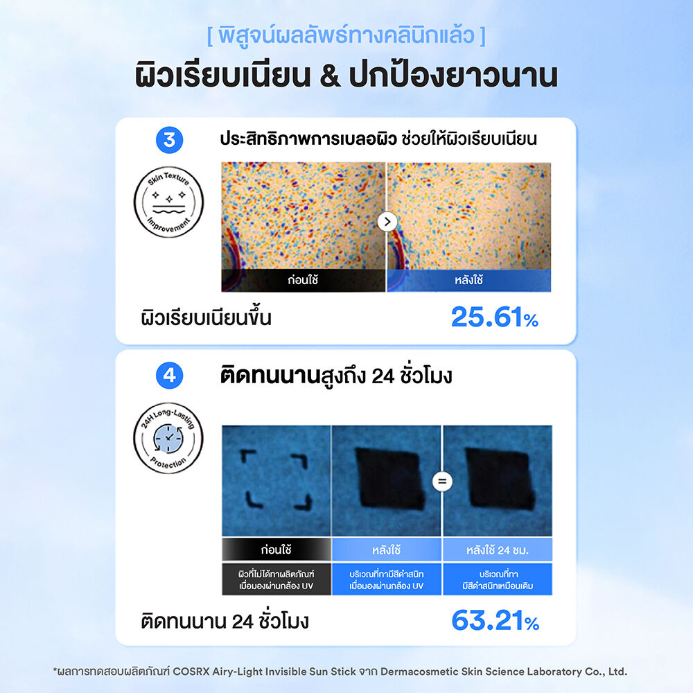 • ไม่ทิ้งคราบขาว พร้อมปกป้องผิวจากแสงแดด
