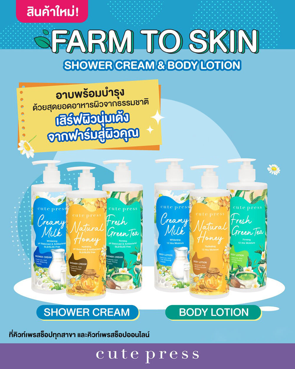 Cute Press Fresh Green Tea Firming Body Lotion 490ml โลชั่นบำรุงผิวกายที่อุดมด้วยอาหารผิวจากธรรมชาติ กลิ่นหอมละมุน ซึมไวไม่เหนียวเหนอะหนะ พร้อมดับเบิ้ล เฟิร์มมิ่ง คอมเพล็กซ์ ที่ผสานพลังจากคาเฟอีน และโคเอ็นไซม์คิวเท็น เพื่อให้ผิวแลดูกระชับ อ่อนเยาว์ ทั้งยังมีสารสกัดจากชาเขียว และน้ำมันดอกอีฟนิ่ง พริมโรส ที่ช่วยบำรุงให้ผิวคุณเนียนนุ่มอย่างรู้สึกได้ และคงความชุ่มชื้นได้ยาวนานถึง 12 ชั่วโมง