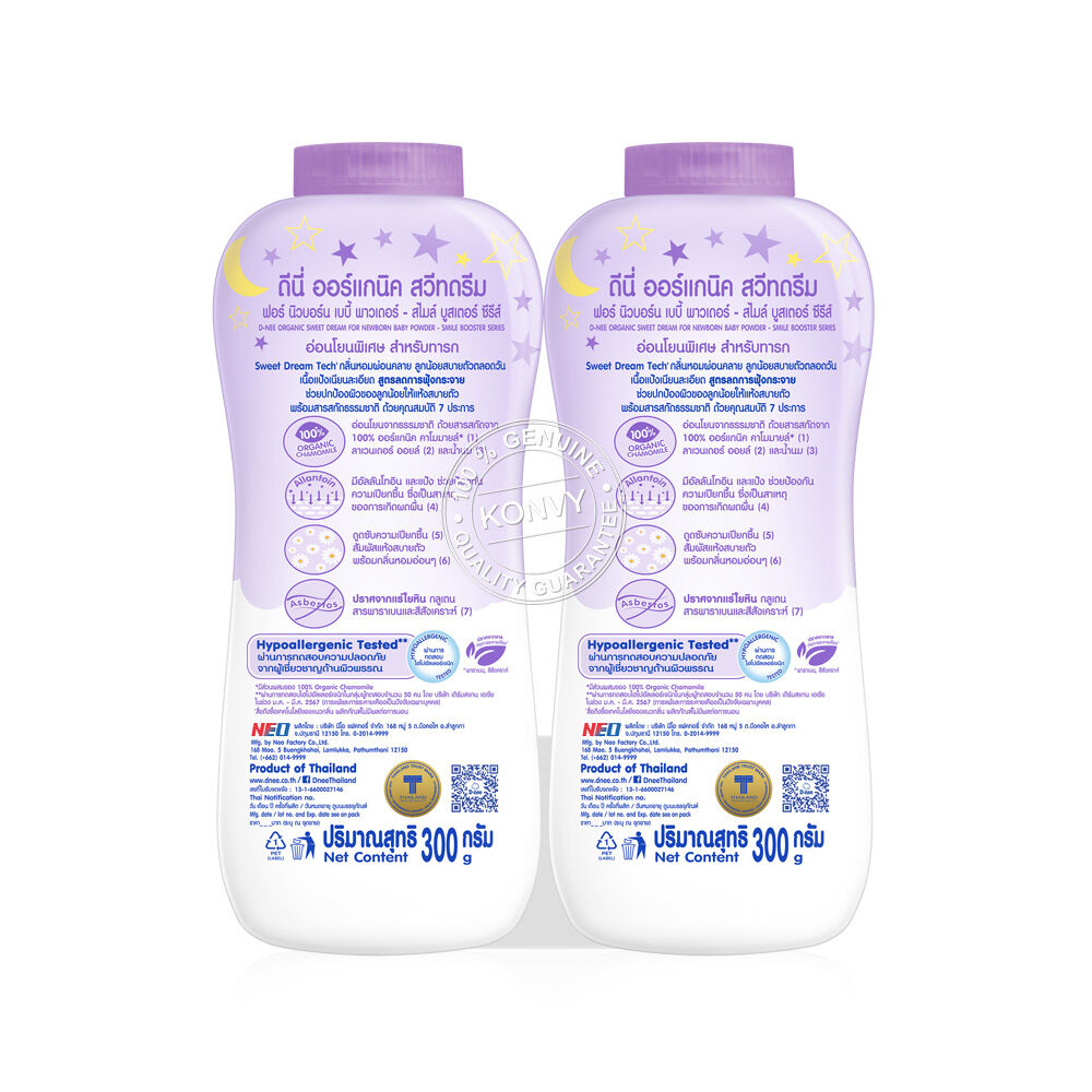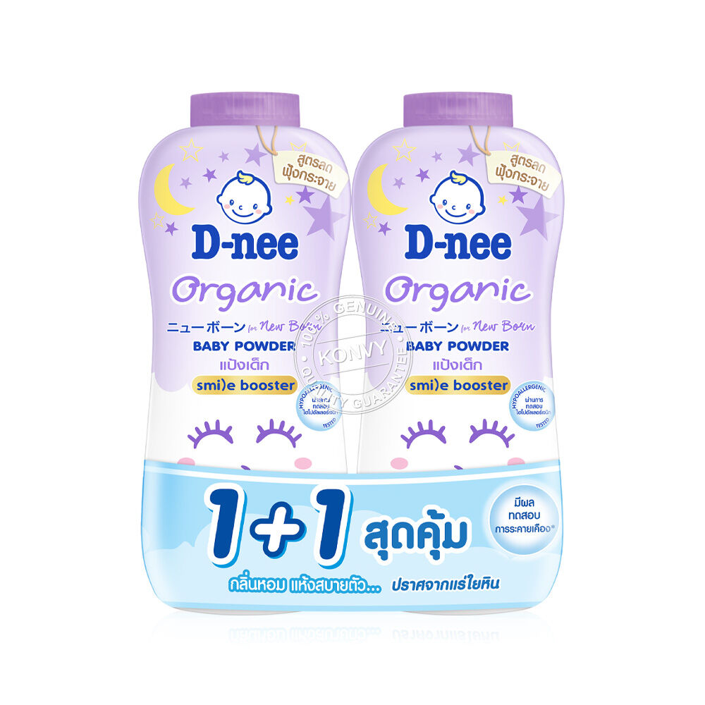 D-nee Organic Sweet Dream For Newborn Baby Powder Smile Booster Series [300g x 2pcs] แป้งเด็กเนื้อแป้งเนียนละเอียดบริสุทธิ์จากธรรมชาติ ปราศจากสี กลิ่นหอม ช่วยทำให้ลูกน้อยผ่อนคลาย สบายตัวตลอดทั้งวัน