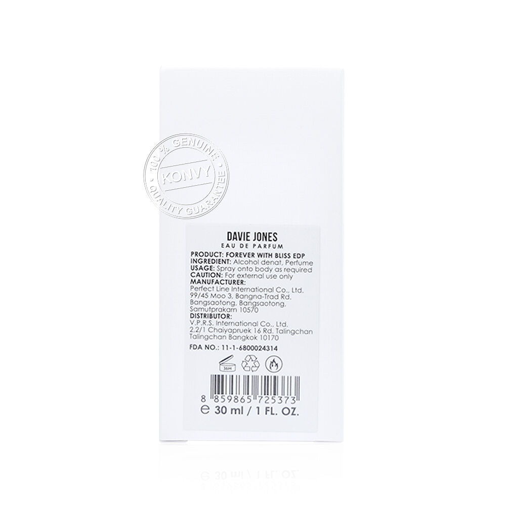 DAVIE JONES Assertiv EDP Forever With Bliss 30ml น้ำหอมยูนิเซ็กส์ กลิ่น Forever With Bliss คัดสรรหัวน้ำหอมนำเข้าจากประเทศฝรั่งเศส มีเอกลักษณ์เฉพาะตัว กลิ่นหอมติดทนนาน มอบความน่าหลงใหล หรูหรา มีเสน่ห์