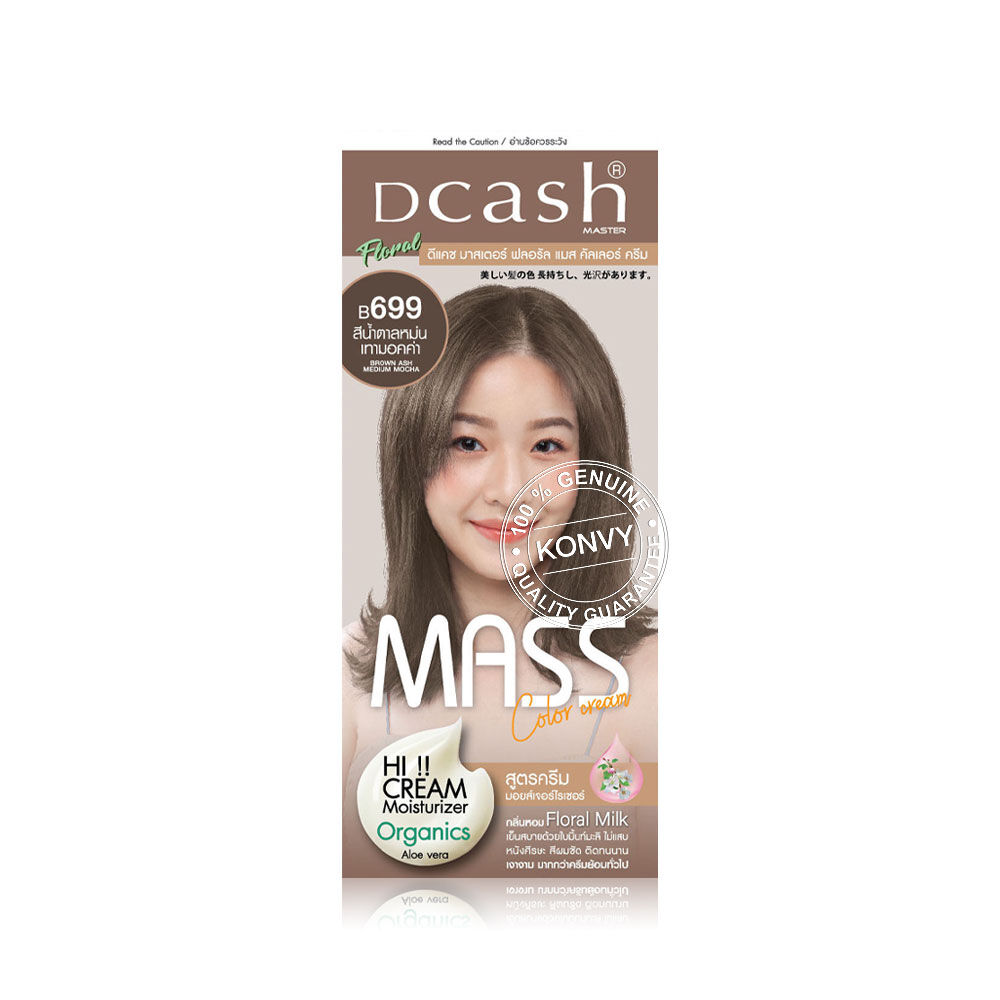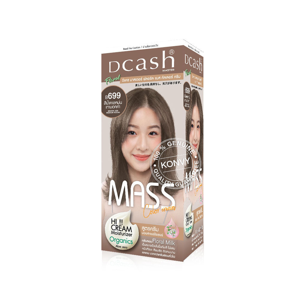 Dcash Master Mass Floral Color Cream 110ml #B699 Brown Ask Medium Mocha [New Package] ครีมเปลี่ยนสีผม สีผมสวย ติดทนนาน เป็นประกาย เงางาม มีส่วนผสมของใบมินท์มะลิ ลดอาการแสบคัน บำรุงด้วยอาร์แกนออยล์ สีผมเงางาม พร้อมสุขภาพผมที่ดีหลังการใช้