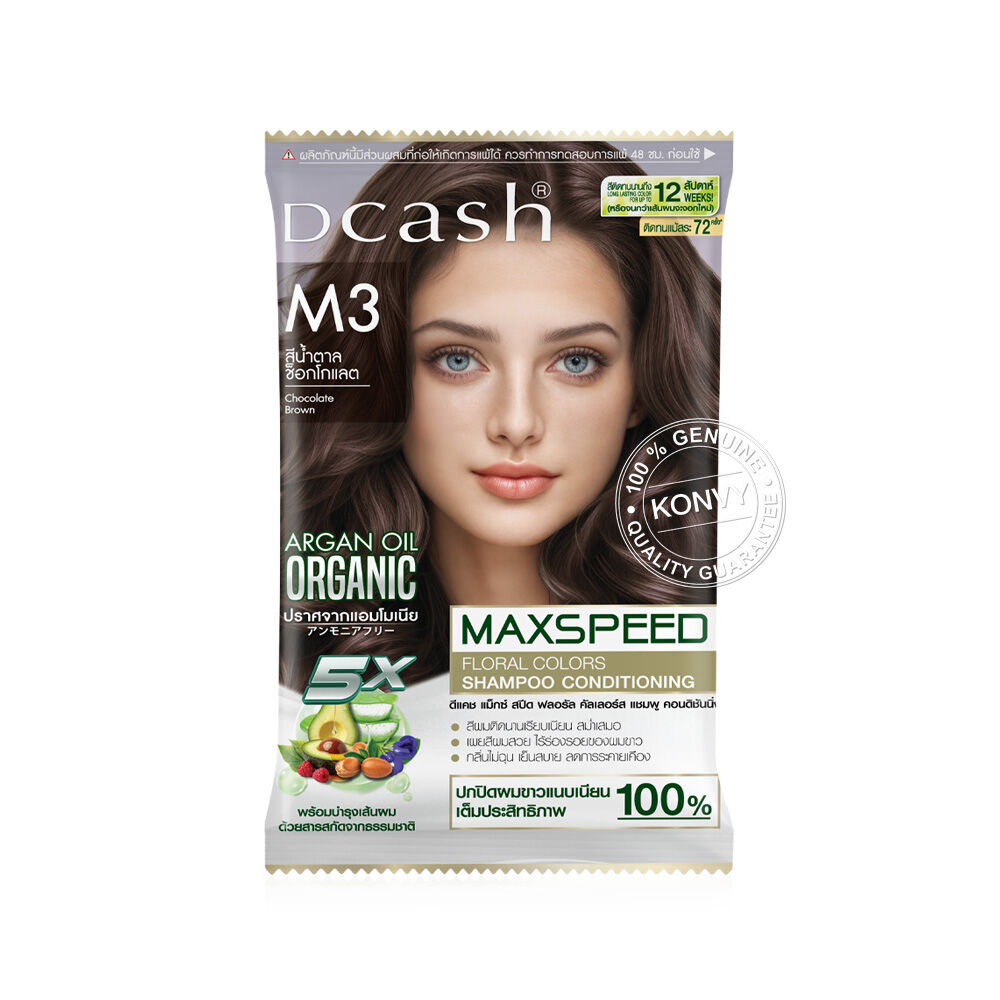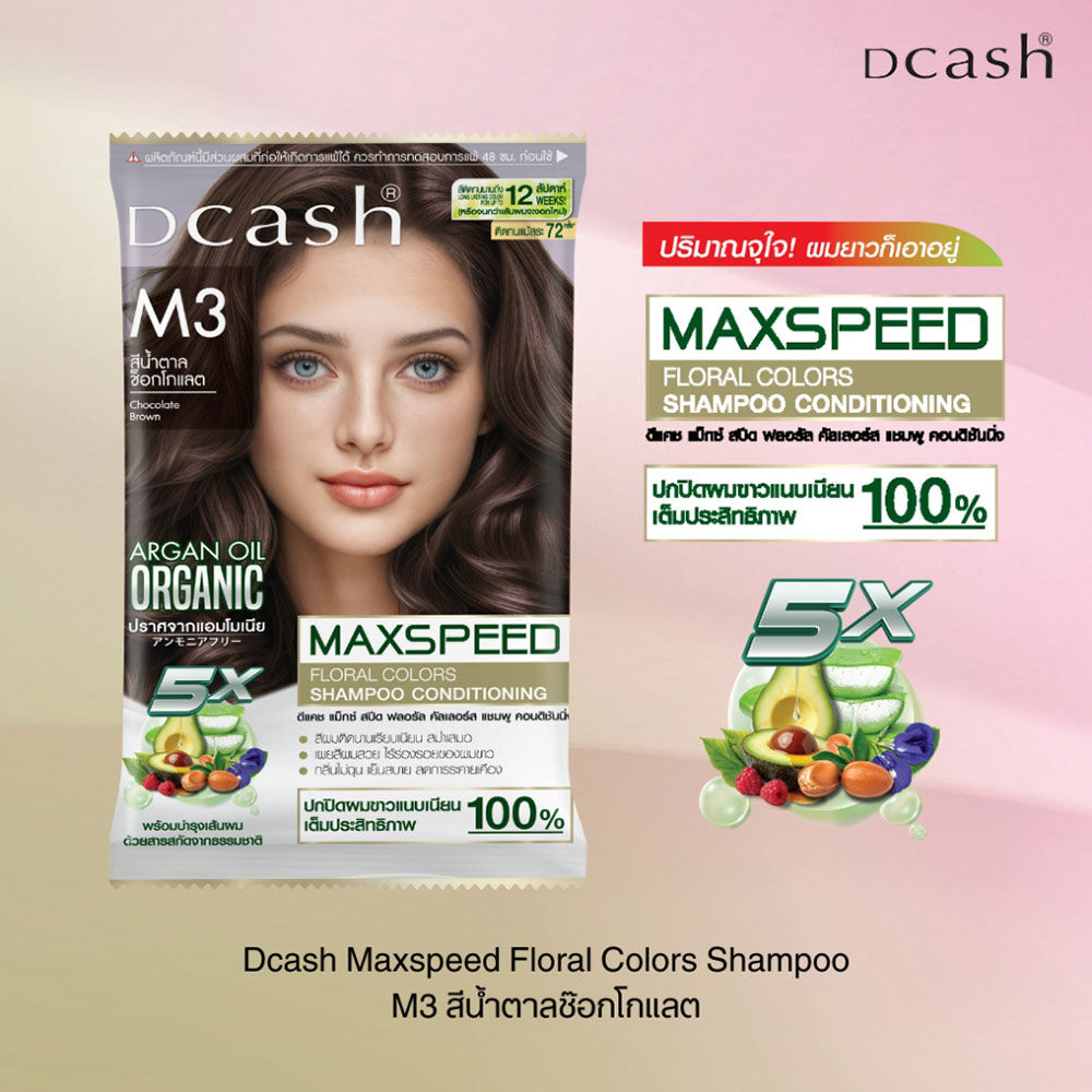 Dcash Maxspeed Floral Colors Shampoo 40ml #M3 Natural Chocolate Brown ผลิตภัณฑ์เปลี่ยนสีผมและปิดผมขาว สีติดทนนาน สามารถใช้ได้ทั้งผู้หญิงและผู้ชาย