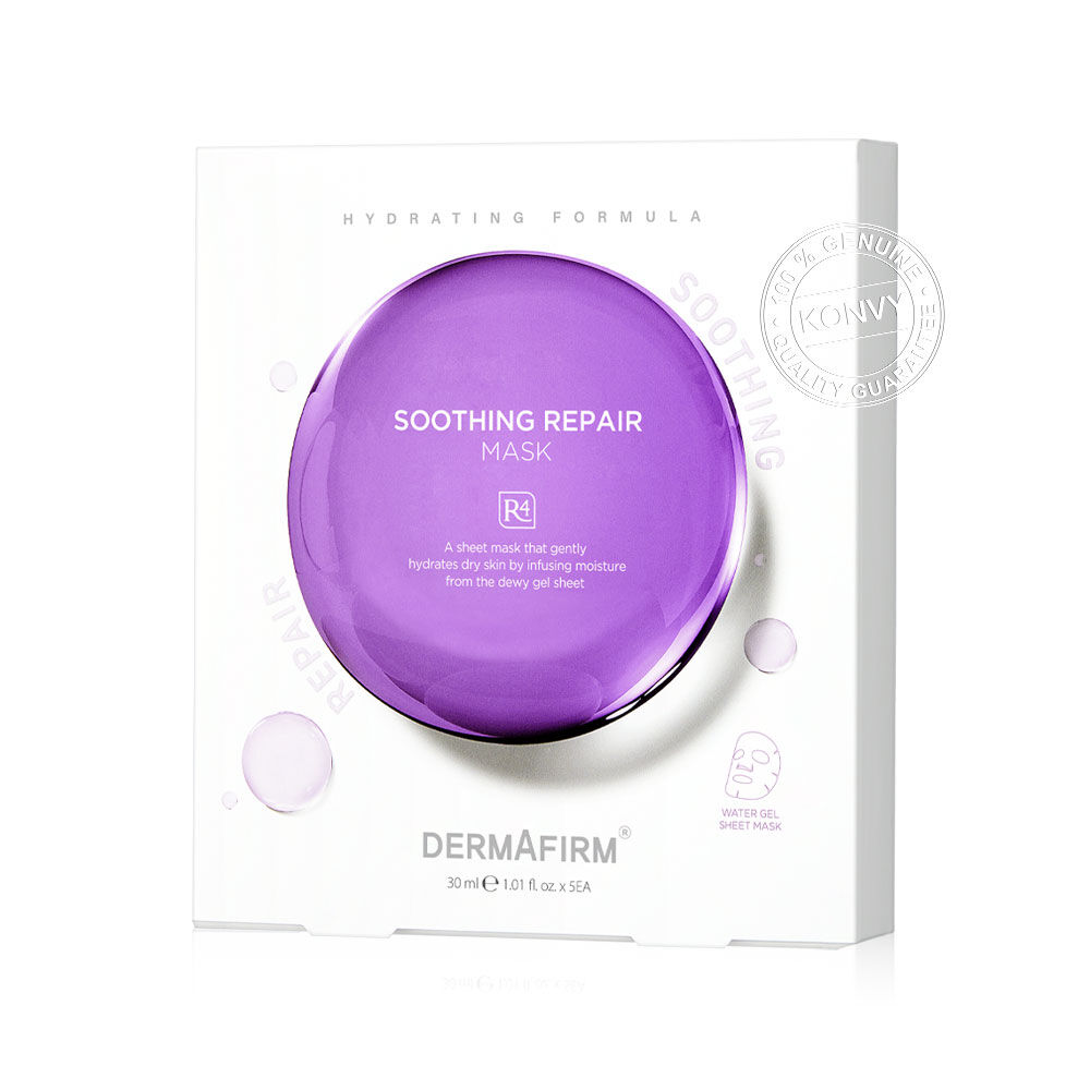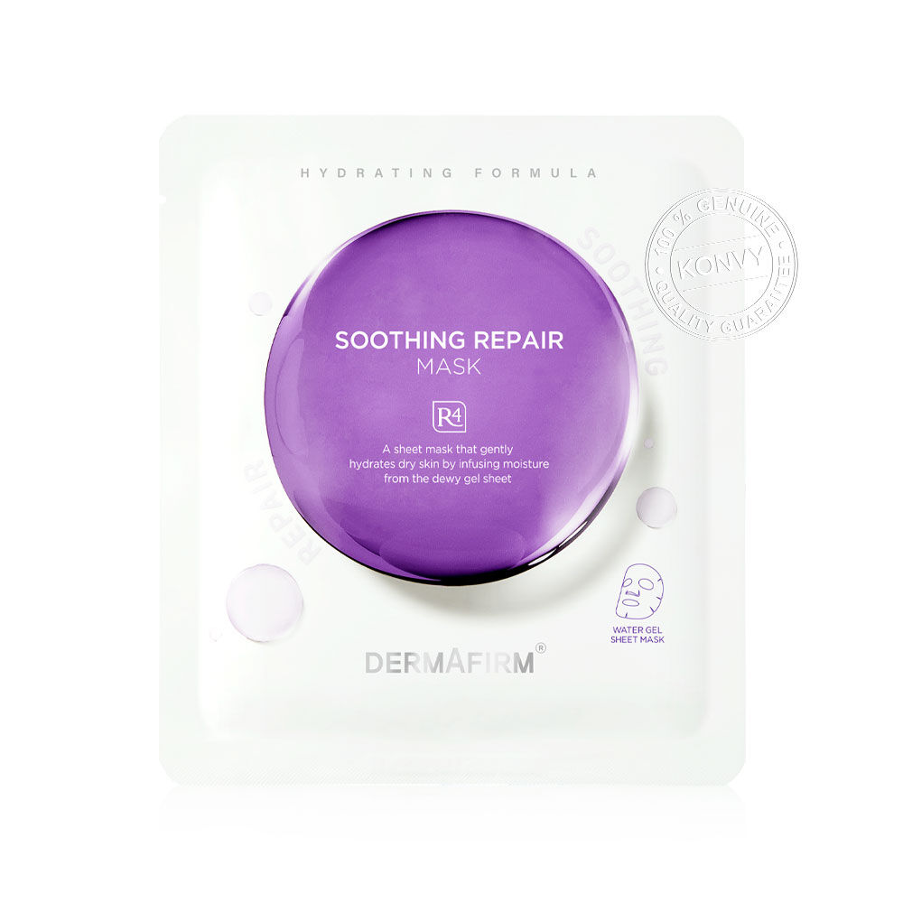 Dermafirm Soothing Repair Mask R4 [30ml x 5pcs] แผ่นมาสก์หน้า เนื้อสัมผัสแบบ Water Mask นุ่มสบาย แนบสนิทกับผิวอย่างอ่อนโยน ช่วยฟื้นฟูและปลอบประโลมผิว เติมความชุ่มชื้นให้ผิว พร้อมลดเลือนรอยแดง และเสริมปราการผิวให้แข็งแรง เผยผิวเนียนนุ่ม อิ่มฟู สุขภาพดี