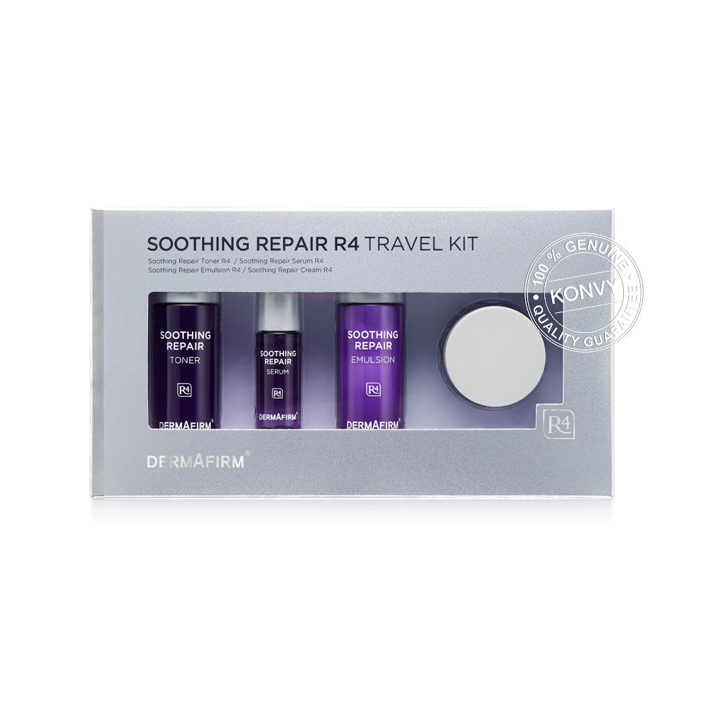 Dermafirm Soothing Repair R4 Travel Kit 1 Set เซทบำรุงผิวหน้าขนาดพกพา เพื่อผิวโกลว์ใส ฉ่ำน้ำ ครบทุกสกินแคร์รูทีน ปิดจบทุกทริปการเดินทาง