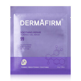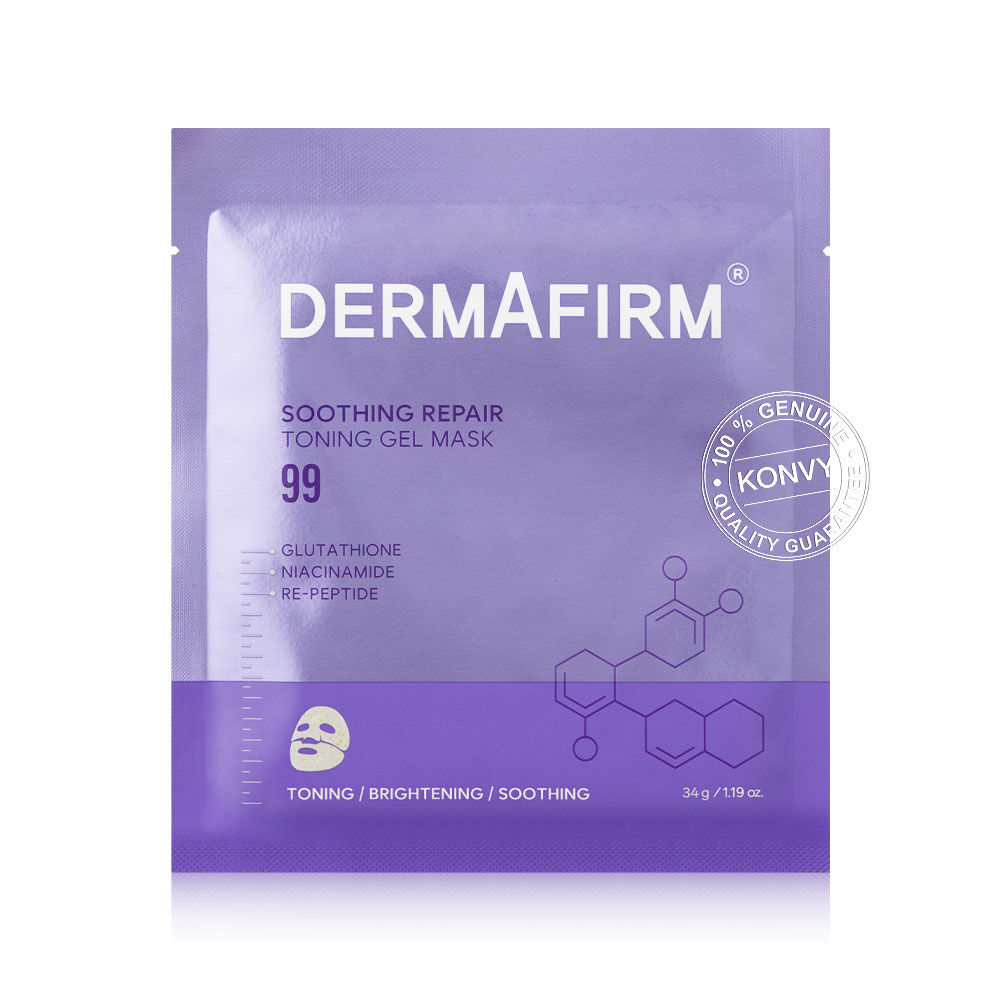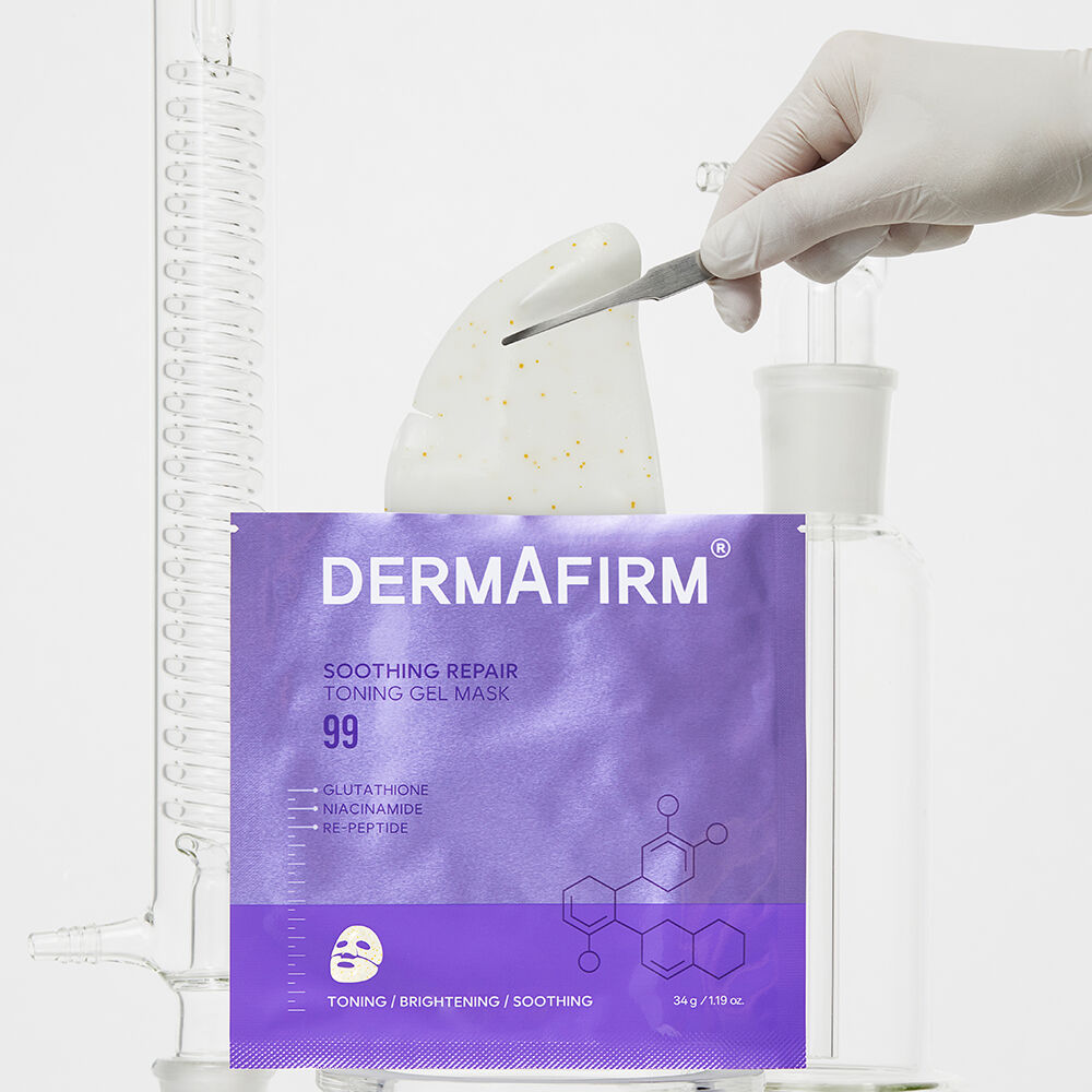 Dermafirm Soothing Repair Toning Gel Mask R4 34g มาสก์เนื้อไฮโดรเจล สัมผัสนุ่มสบายผิว มาพร้อมเม็ดบีทส์สีเหลือง ด้วยเทคโนโลยี LNP (Lipid Nano Particle) ผสาน Glutathione Nano-Brightening ที่จดสิทธิบัตรโดย Dermafirm ช่วยบำรุงผิวให้เรียบเนียน และปรับสีผิวให้สม่ำเสมอ แลดูกระจ่างใสขึ้น โดยสารบำรุงจะเริ่มซึมเข้าสู่ผิวภายใน 2-3 ชั่วโมง ขณะเดียวกันเนื้อมาสก์จะค่อยๆ เปลี่ยนจากเจลทึบเป็นเจลใส เผยผิวเนียนนุ่ม ชุ่มชื้น ดูเปล่งประกายเป็นธรรมชาติ เหมือนได้พักผ่อนเต็มที่