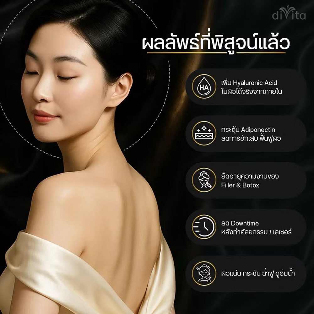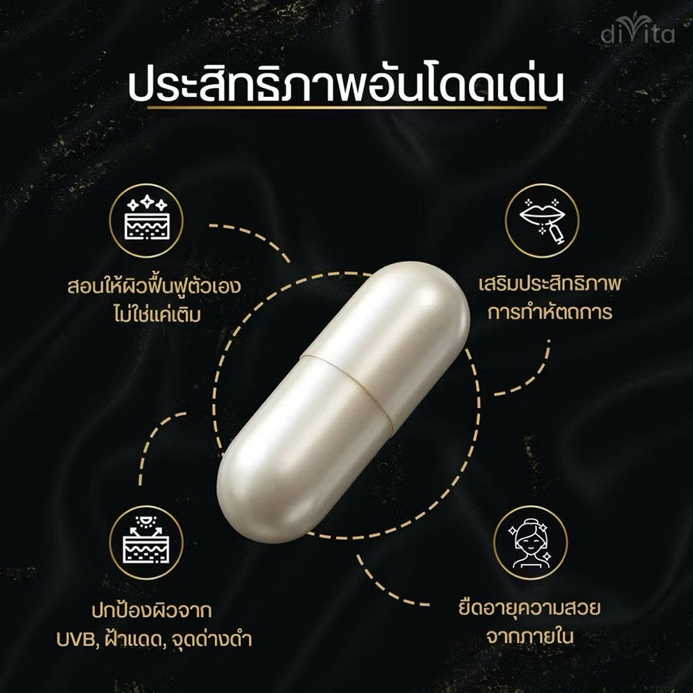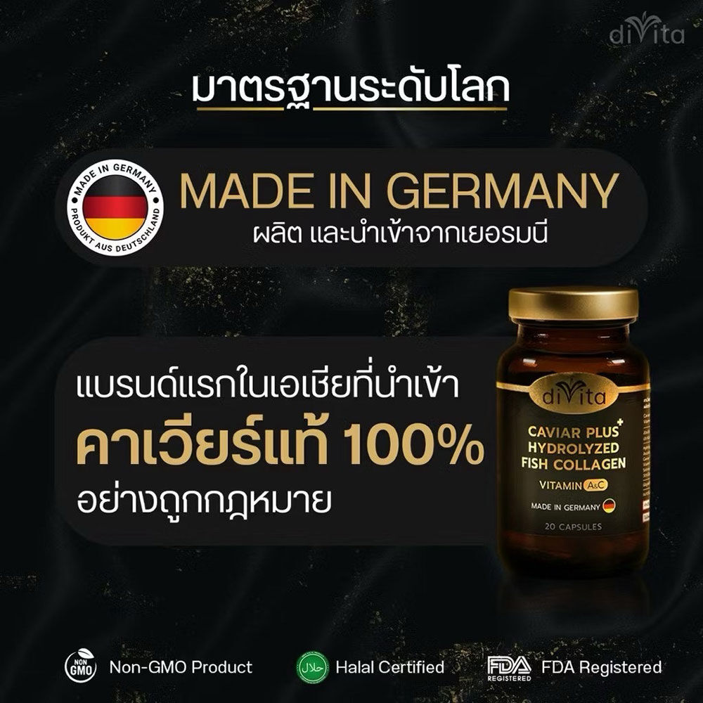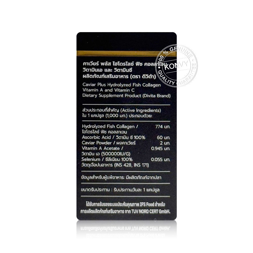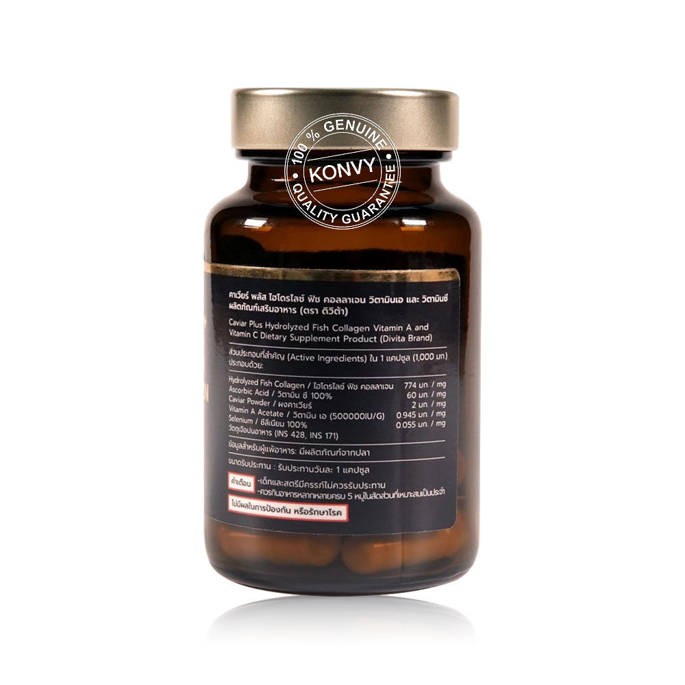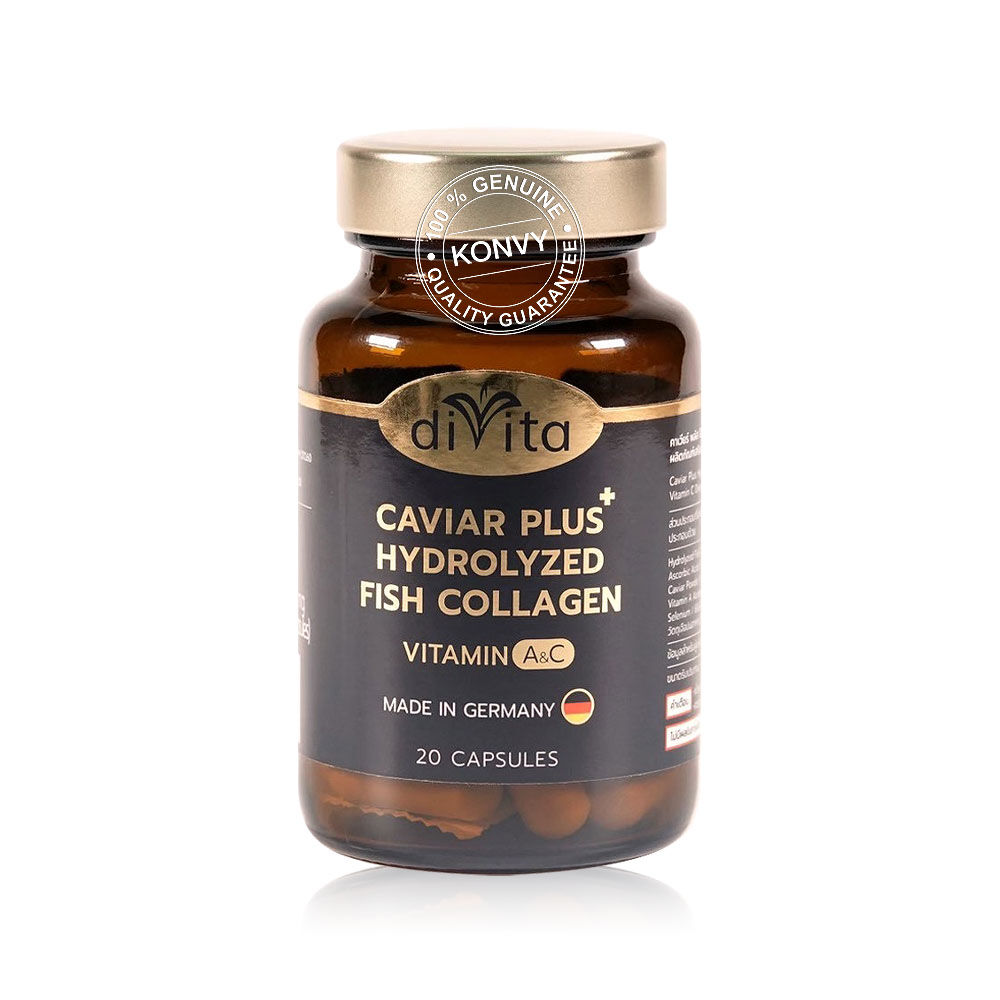 Divita Caviar Plus Hydrolyzed Fish Collagen Vitamin A&C 20 Capsules ผลิตภัณฑ์เสริมอาหาร ที่ผสมผสานสารสกัดไข่ปลาคาเวียร์ และ Peptan Collagen