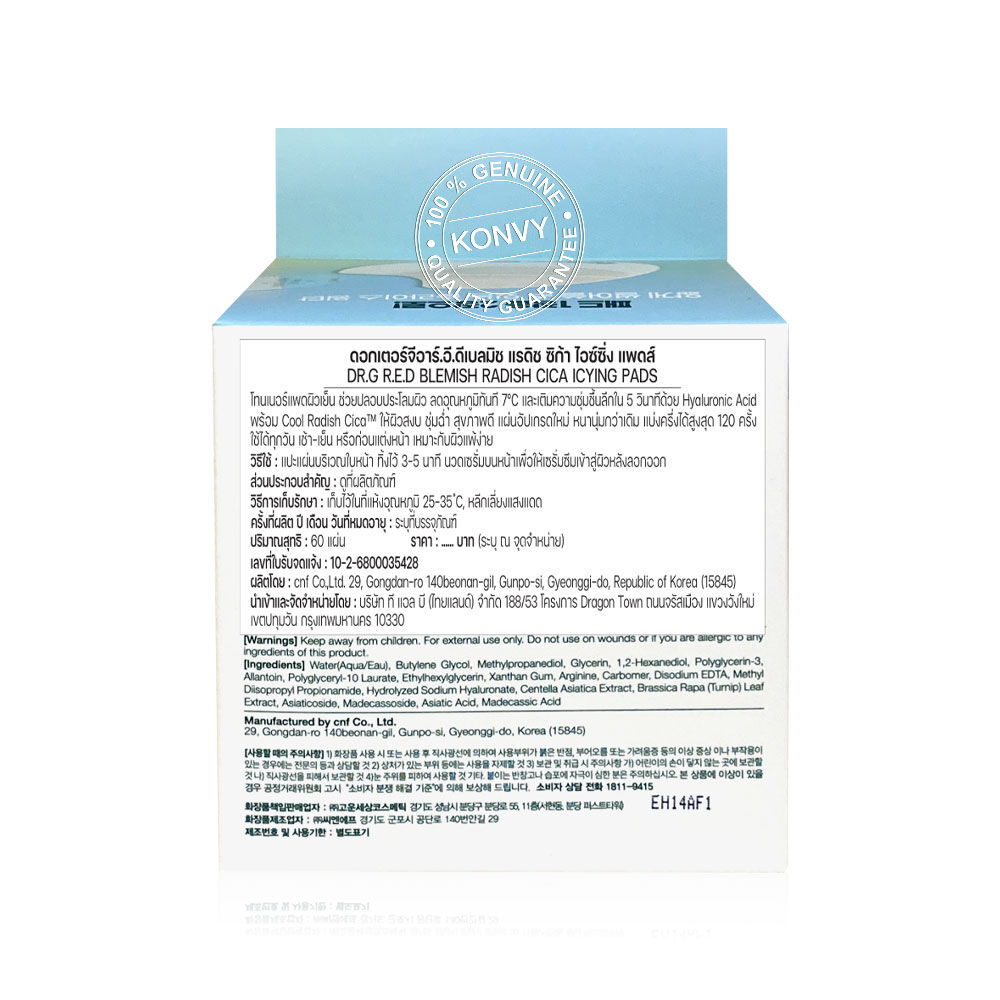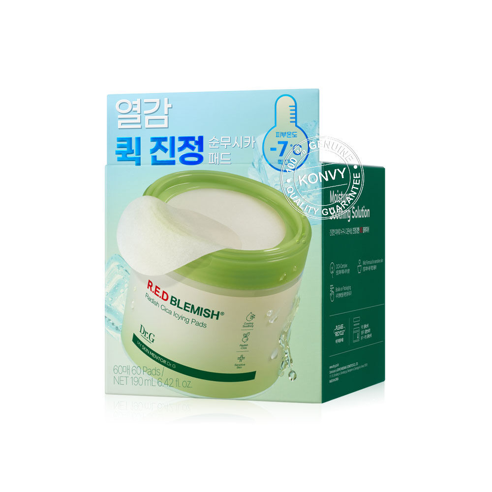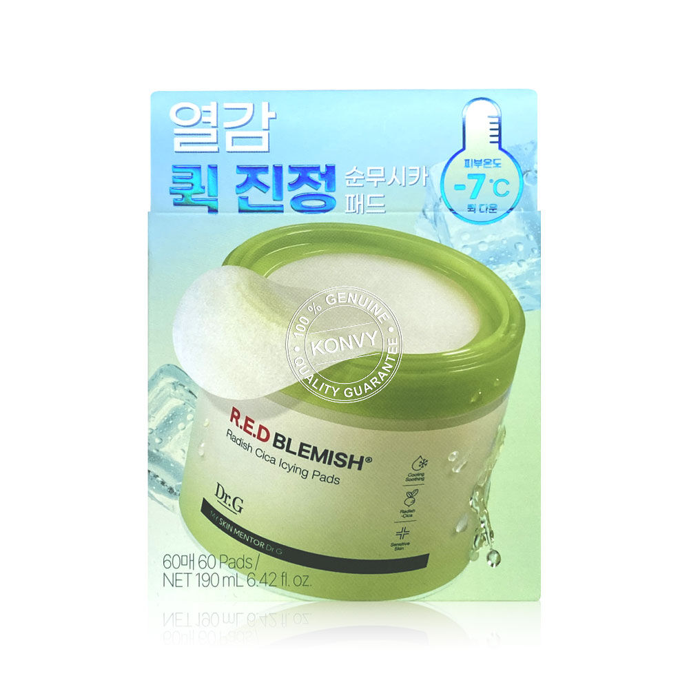 Dr.G R.E.D Blemish Radish Cica Icying Pads 60 Pads โทนเนอร์แพด ที่มอบผิวเย็น สงบ และปลอบประโลมผิว พร้อมบำรุงล้ำลึกเพื่อเตรียมผิวให้พร้อมก่อนแต่งหน้า อัปเกรดใหม่ด้วยแผ่นที่หนานุ่มกว่าเดิม เก็บความชุ่มชื้นได้มากขึ้น อัดแน่นด้วยสารสกัดเสมือนแท้งค์น้ำ ให้ผิวได้รับการบำรุงเต็มที่ทันทีที่สัมผัส ทั้งชุ่มชื้นและคูลลิ่งในคราวเดียว ใช้งานได้ทั้งเช็ดทั่วใบหน้าและมาสก์เฉพาะจุดอย่างสะดวกทุกวัน