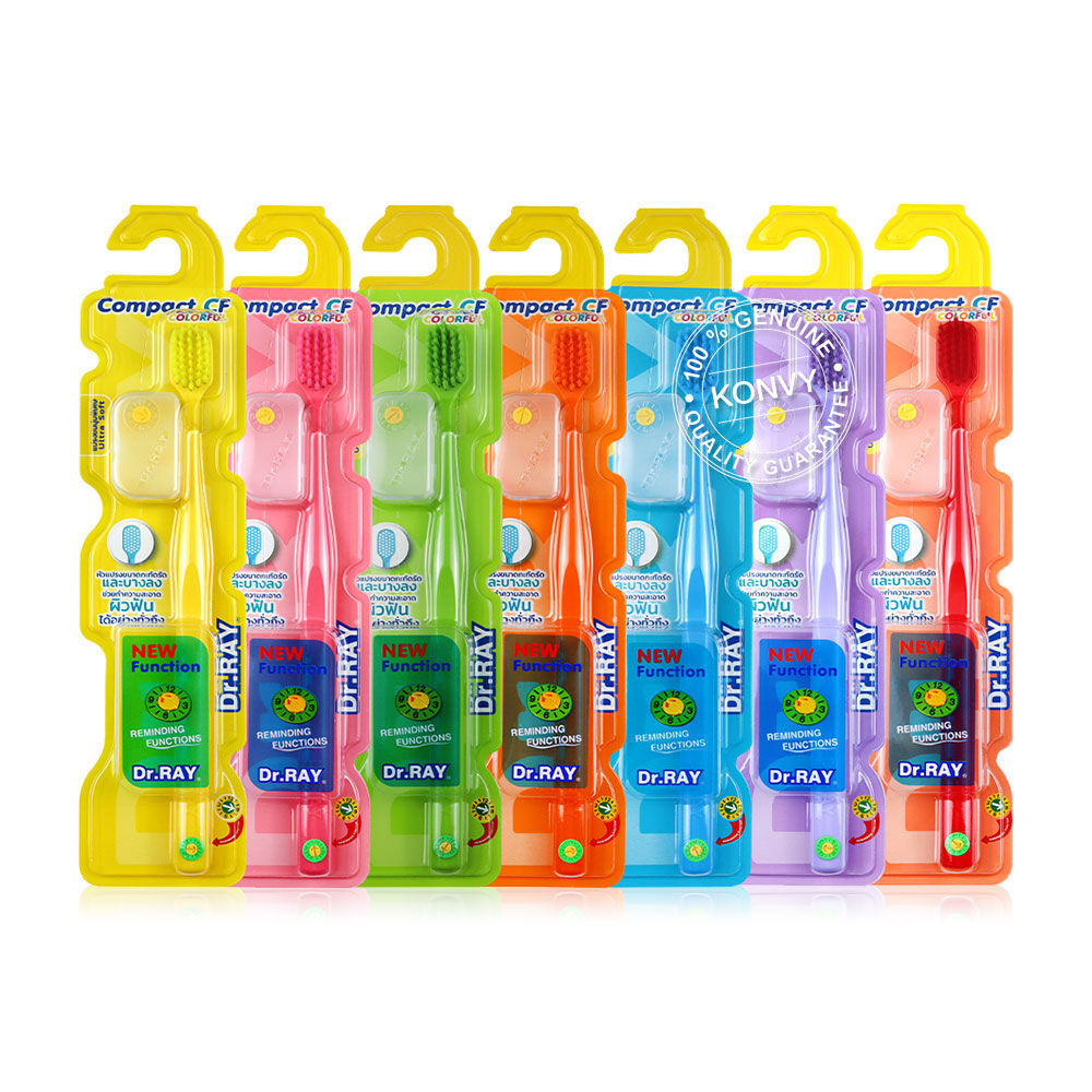 Dr.ray Toothbrush Compact CF Colorful D53 1pc [Random Colors] แปรงสีฟัน หัวแปรงขนาดกะทัดลัด และขอบบางลง ขนแปรงปลายเรียว 0.01 มม. ทำความสะอาดผิวฟันได้อย่างทั่วถึง ลิขสิทธิ์เฉพาะ ดร.เรย์ ฟังก์ชั่นการตั้งเวลา เตือนเมื่อถึงเวลาเปลี่ยนแปรงสีฟัน วัสดุด้ามแปรงพลาสติก PP+TPE วัสดุขนแปรง PBT (พีบีที)