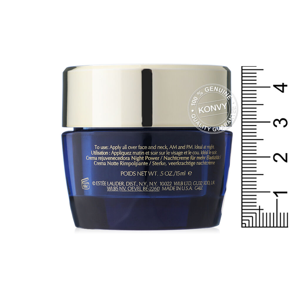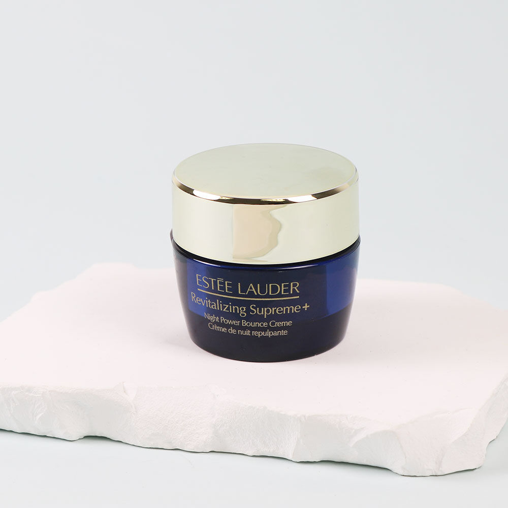 Estee Lauder Revitalizing Supreme+ Night Power Bounce Creme 15ml ครีมบำรุงผิวสำหรับกลางคืน เนื้อเข้มข้นเนียนนุ่ม เกลี่ยง่าย ซึมไว ไม่หนักผิว ด้วยเทคโนโลยี COLLANIGHT-8™ เอกสิทธิ์เฉพาะของ Estée Lauder ช่วยลดเลือนริ้วรอย และกระชับผิว พร้อมผสาน 8 สารสกัดที่ทำงานร่วมกัน ได้แก่ Moringa Extract, Hibiscus-8 Fraction, 3 Collagen-Boosting Technology, Algae Extract, Sigesbeckia Extract, และ Vitamin E ช่วยฟื้นบำรุงผิวอย่างล้ำลึก และให้ผิวยืดหยุ่น มอบผิวนุ่มเด้ง ดูอิ่มฟู สุขภาพดี