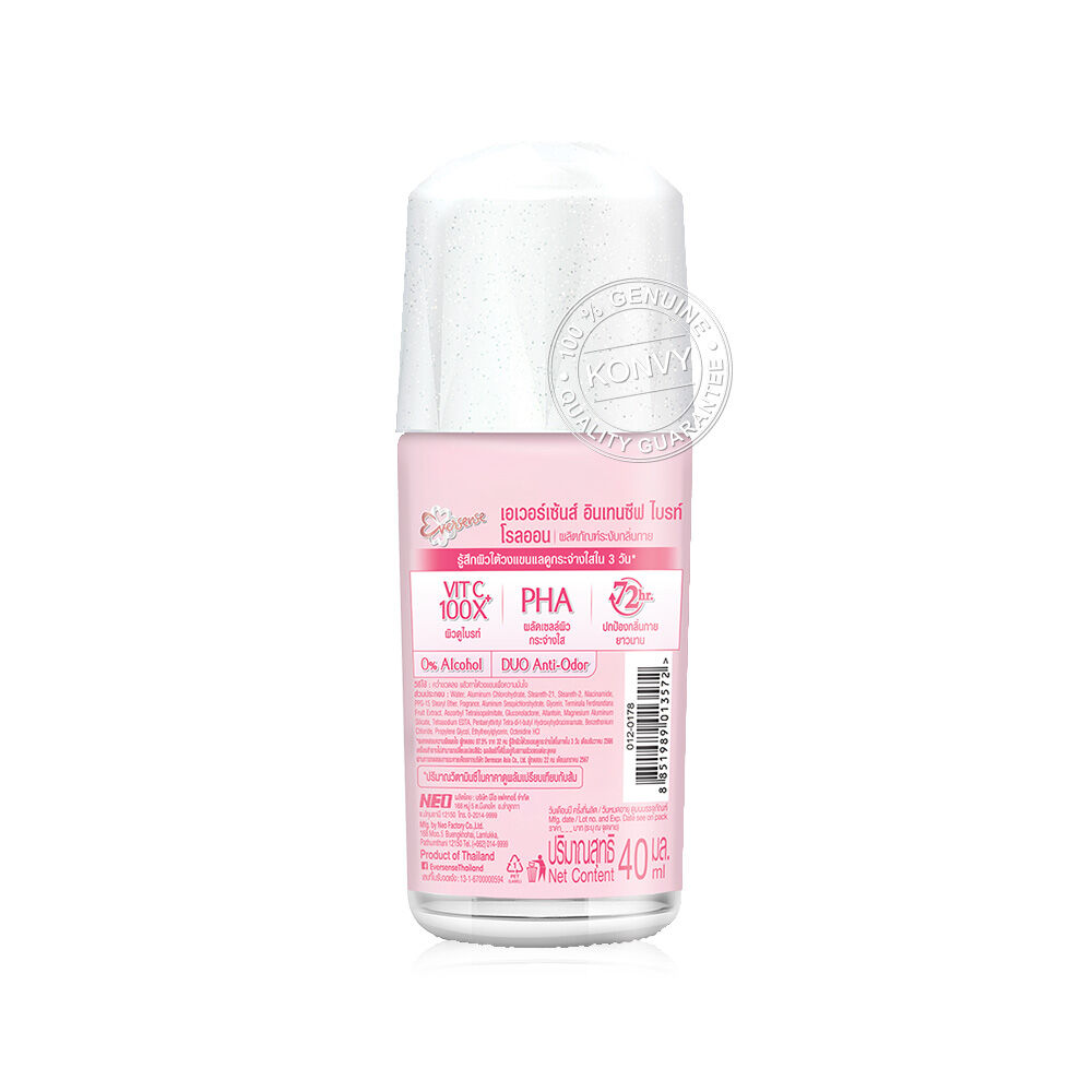 Eversense Intensive Bright Roll On [40ml x 2pcs] โรลออนระงับกลิ่นกาย แห้งไว ไม่เป็นคราบขาว ช่วยปรับสภาพผิว ให้เรียบเนียนใส สุขภาพดี พร้อมผลัดเซลล์ผิวที่เสื่อมสภาพ ปกป้องเหงื่อและกลิ่นกายมั่นใจยาวนาน