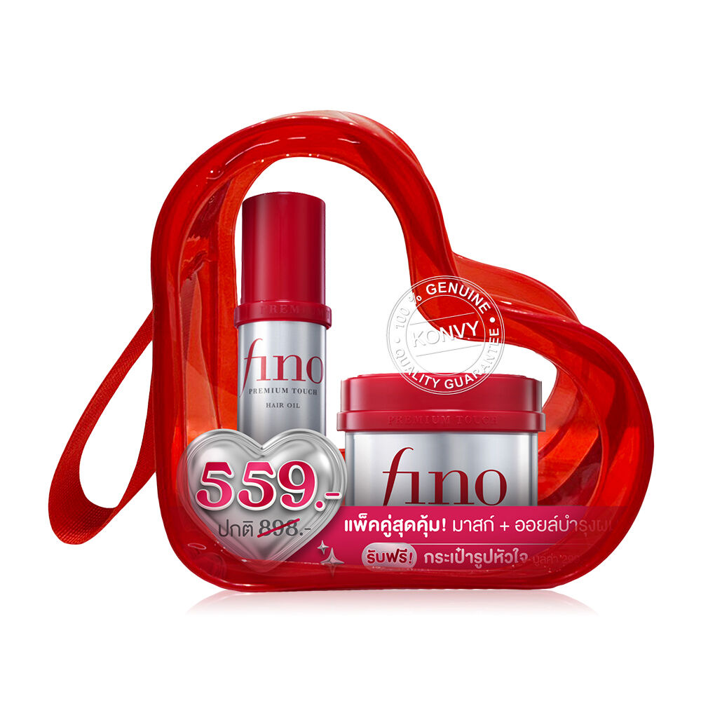 FINO Heart Bag Premium Touch Hair Mask 230g + Hair Oil Free 70ml เซทมาสก์และออยล์บำรุงผม ช่วยฟื้นบำรุงผมเสีย ให้ผมสวยลื่นสมูทสุดปลาย